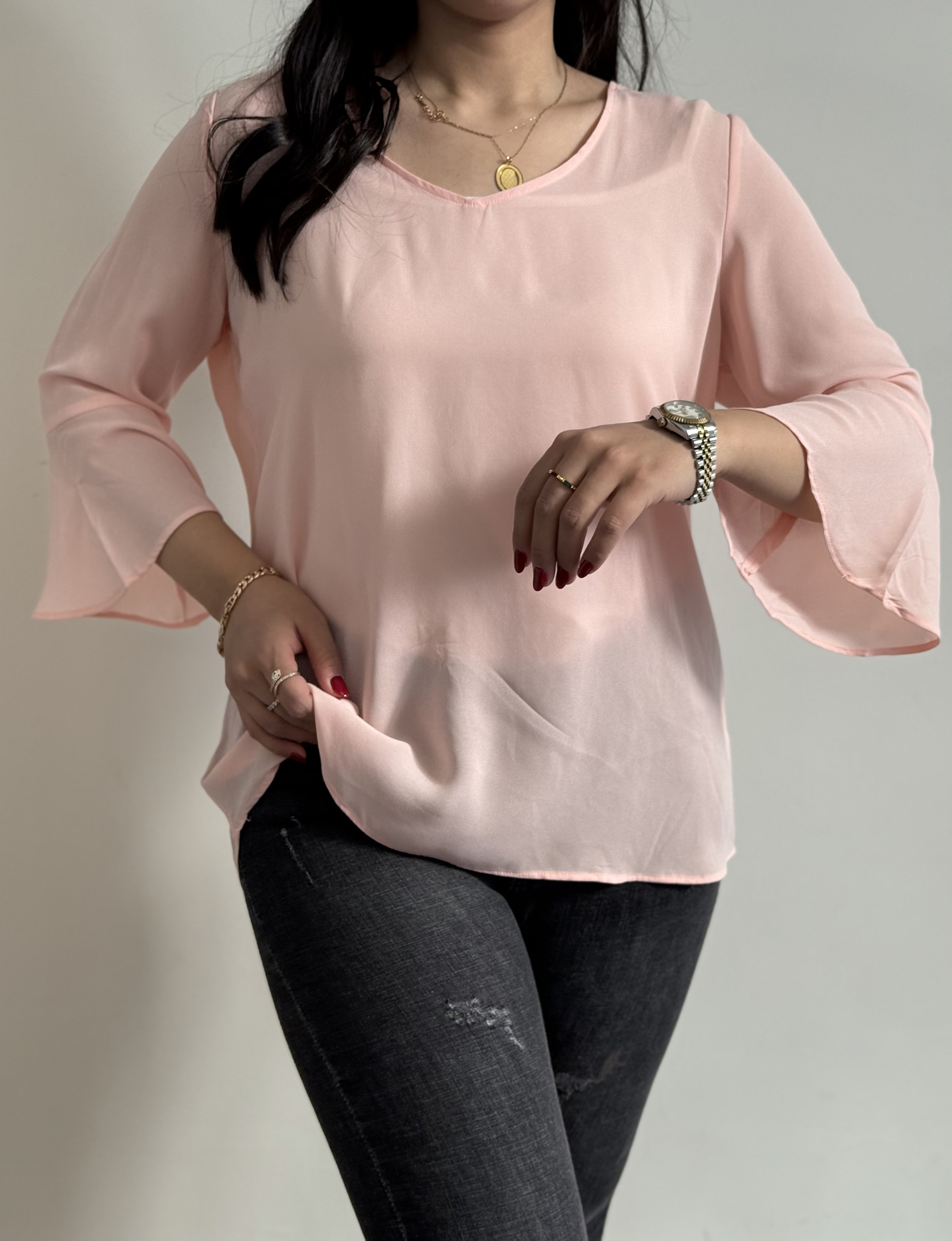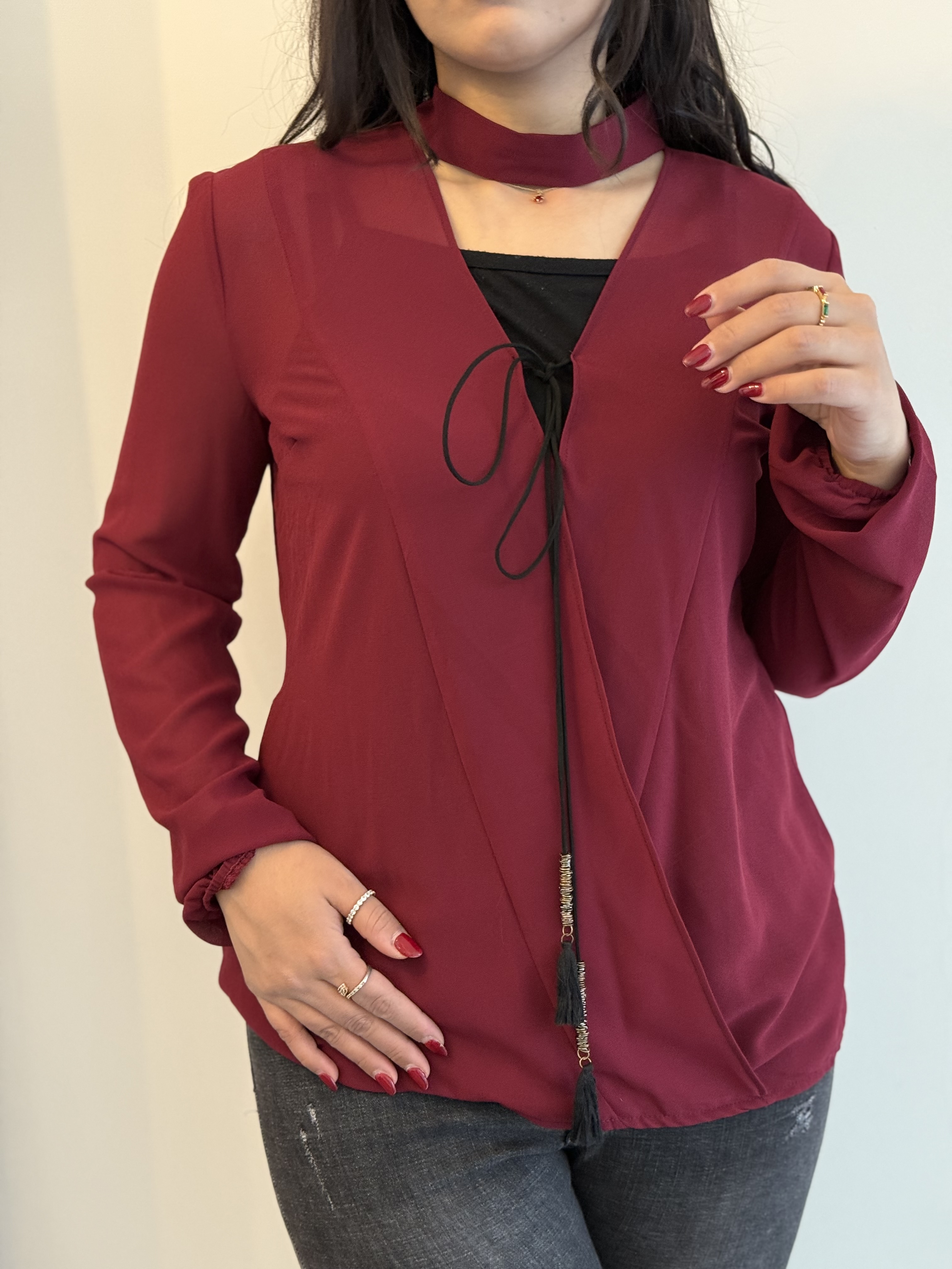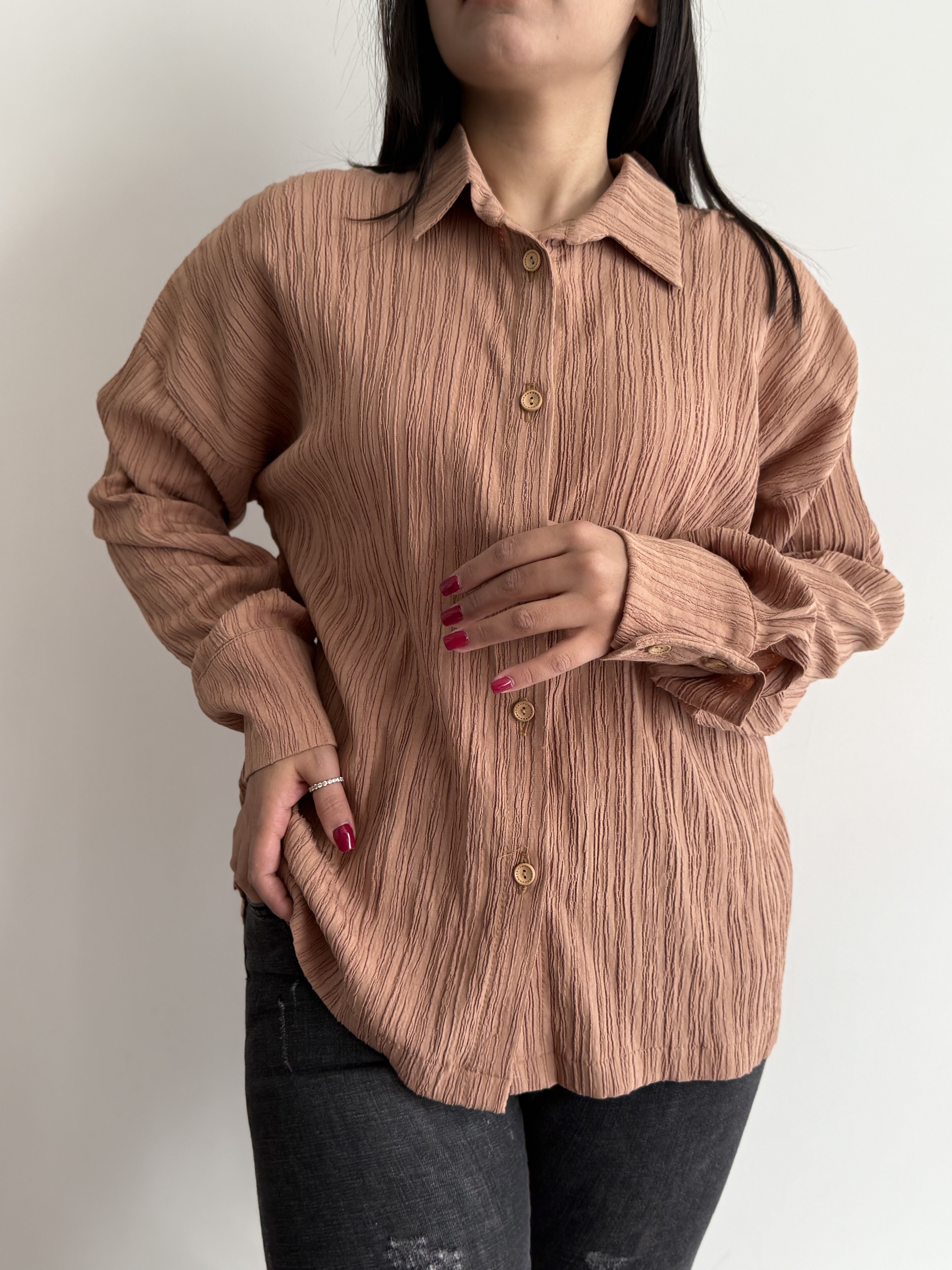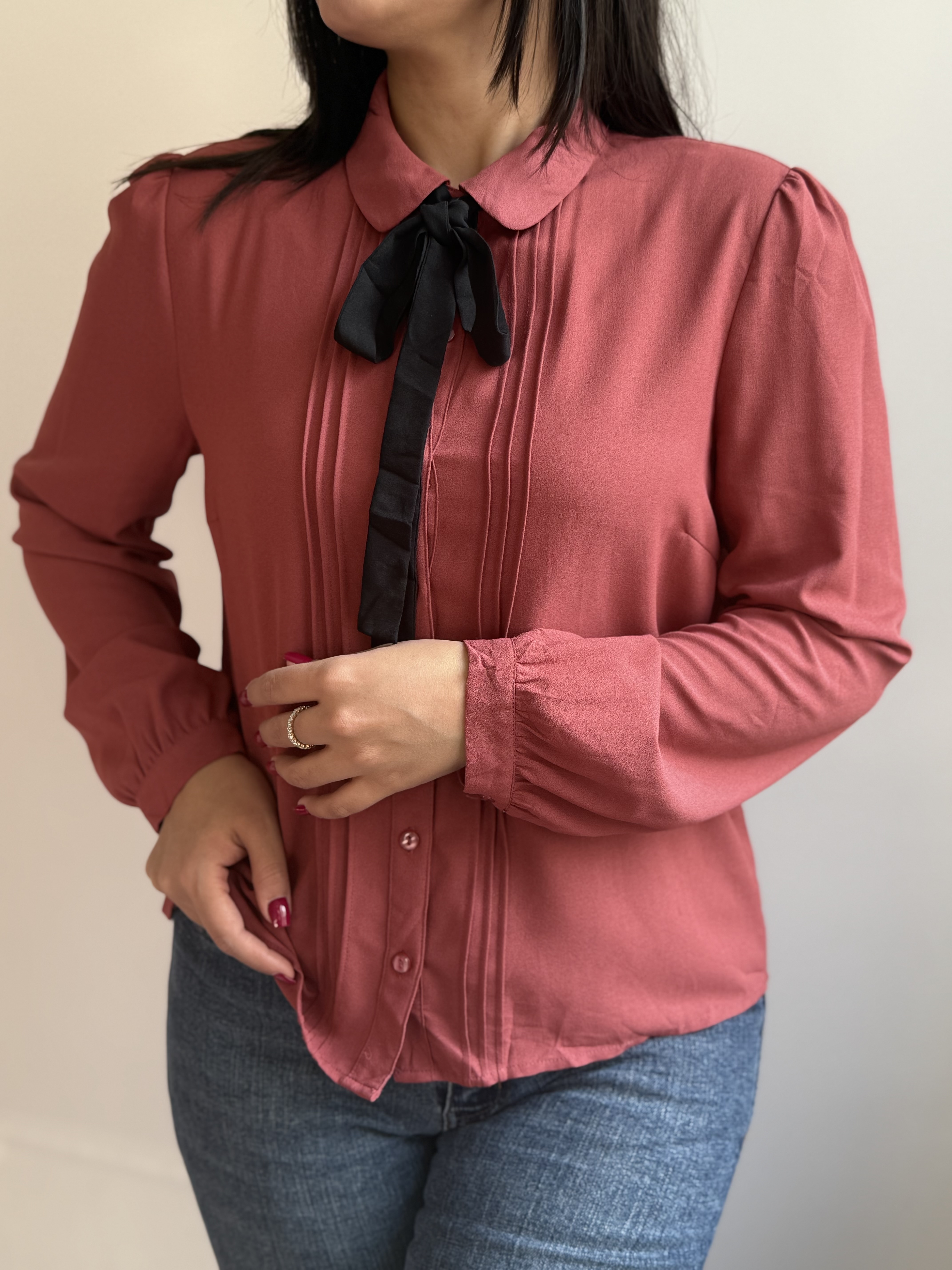 شومیز کرپ آستین پاپیونی رنگ کاربنی