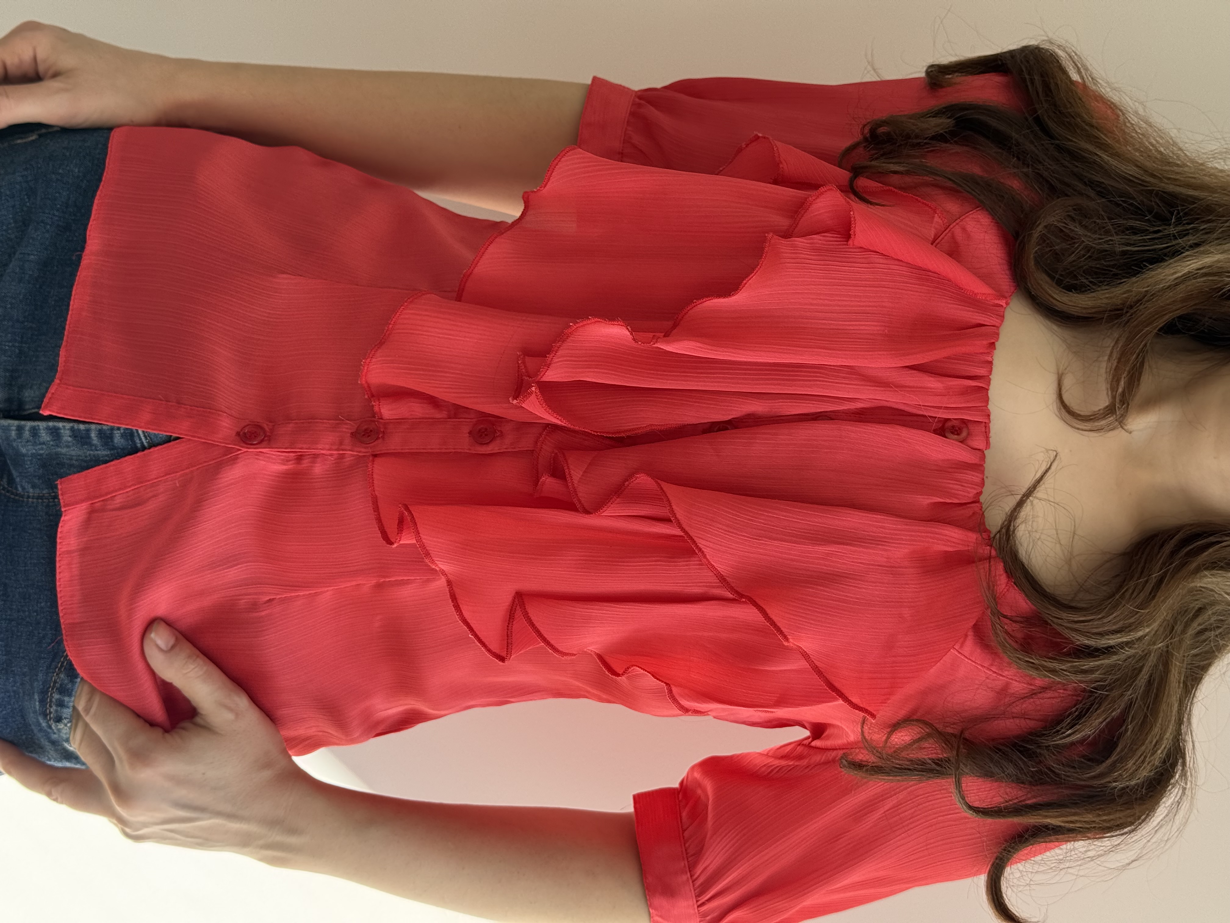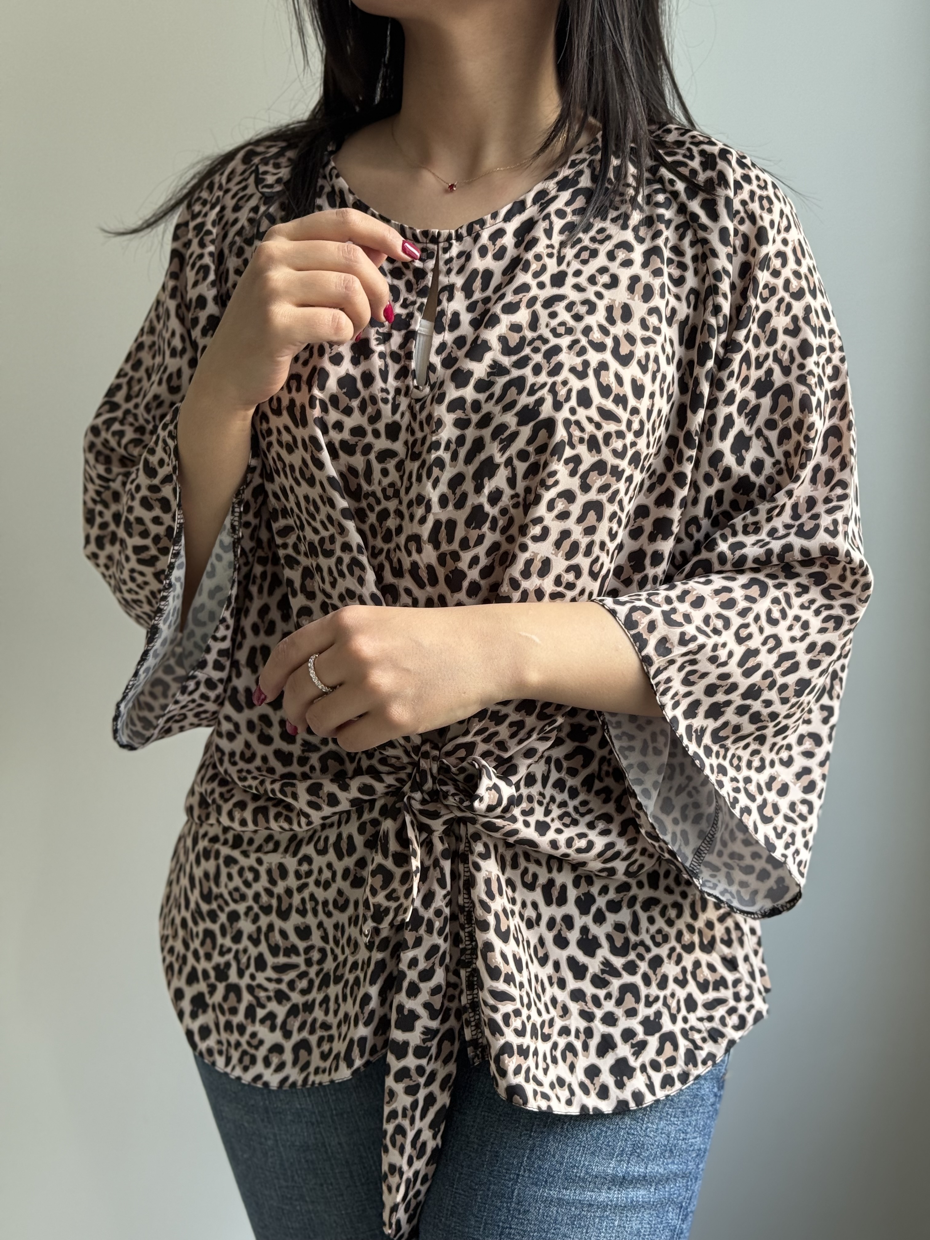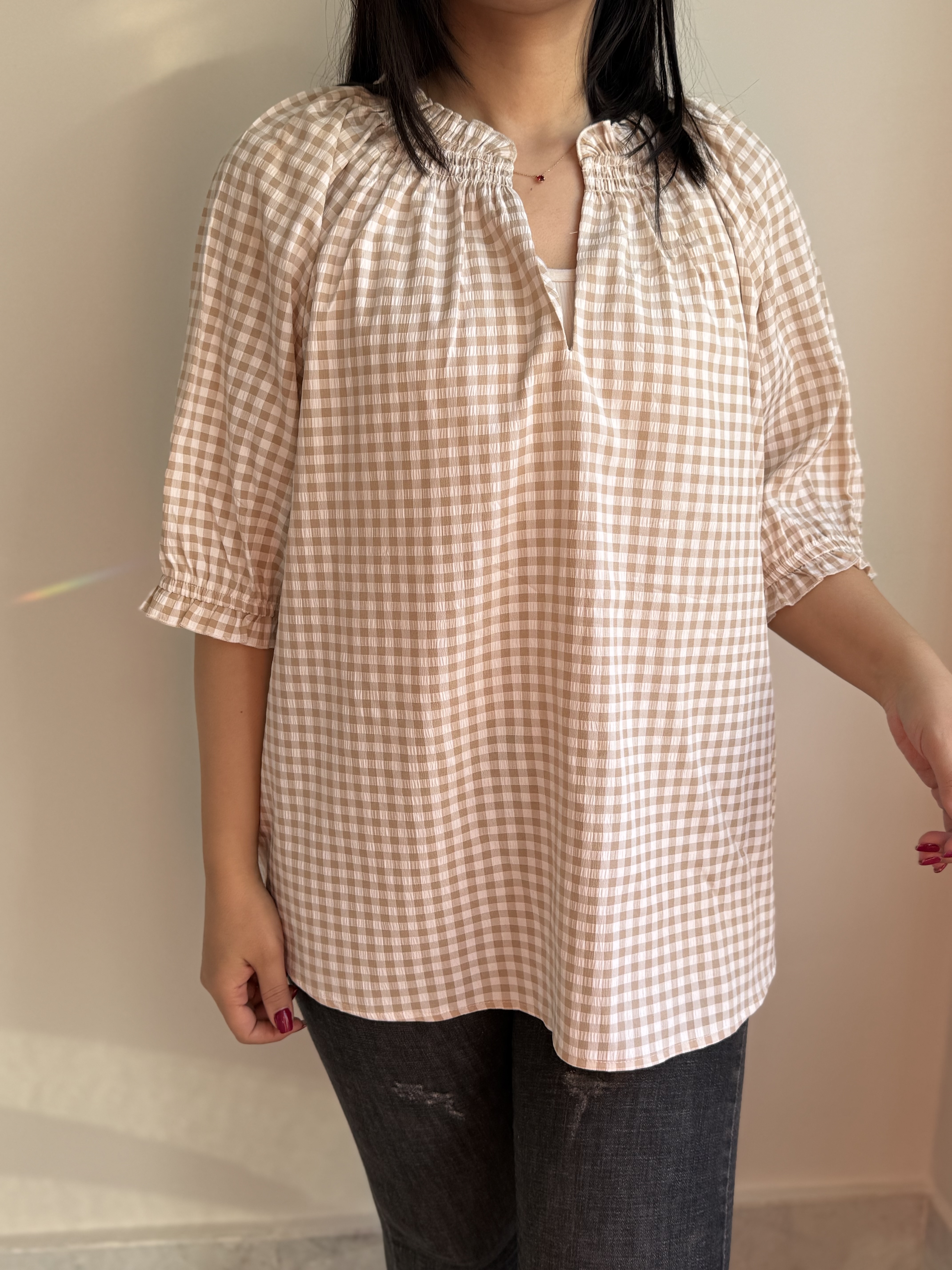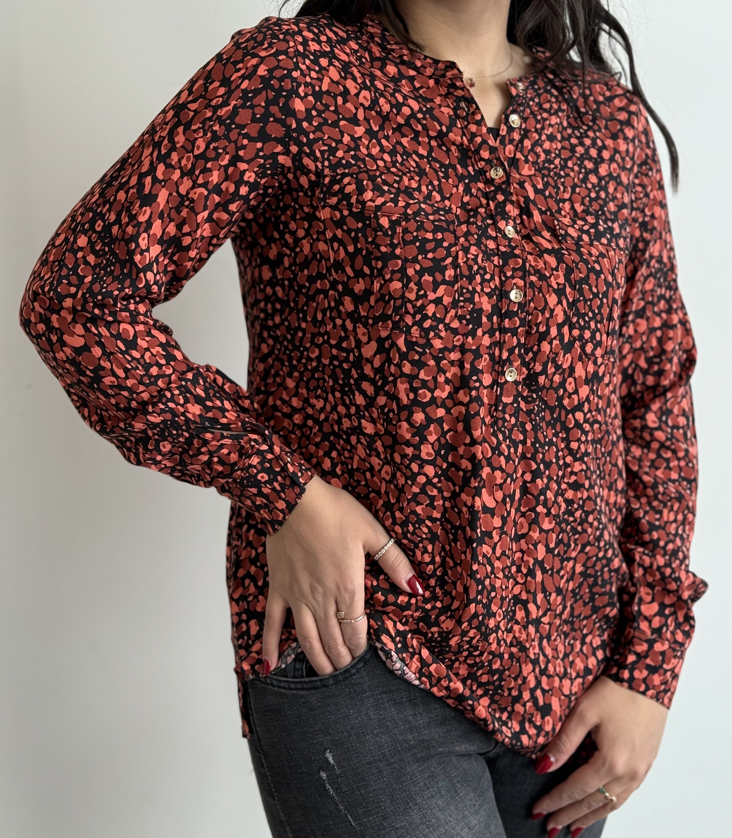 شومیز کرپ آستین پاپیونی رنگ کاربنی