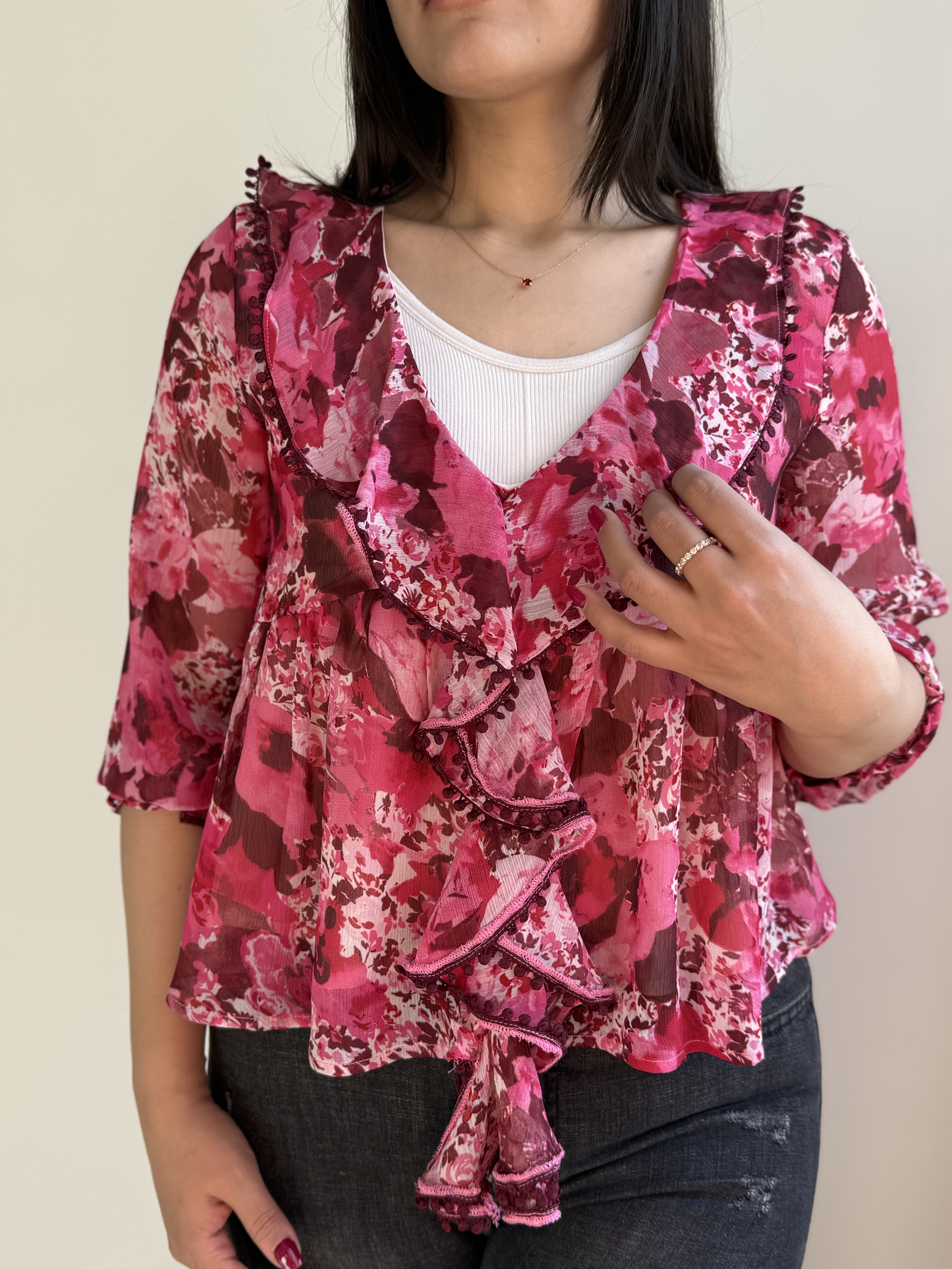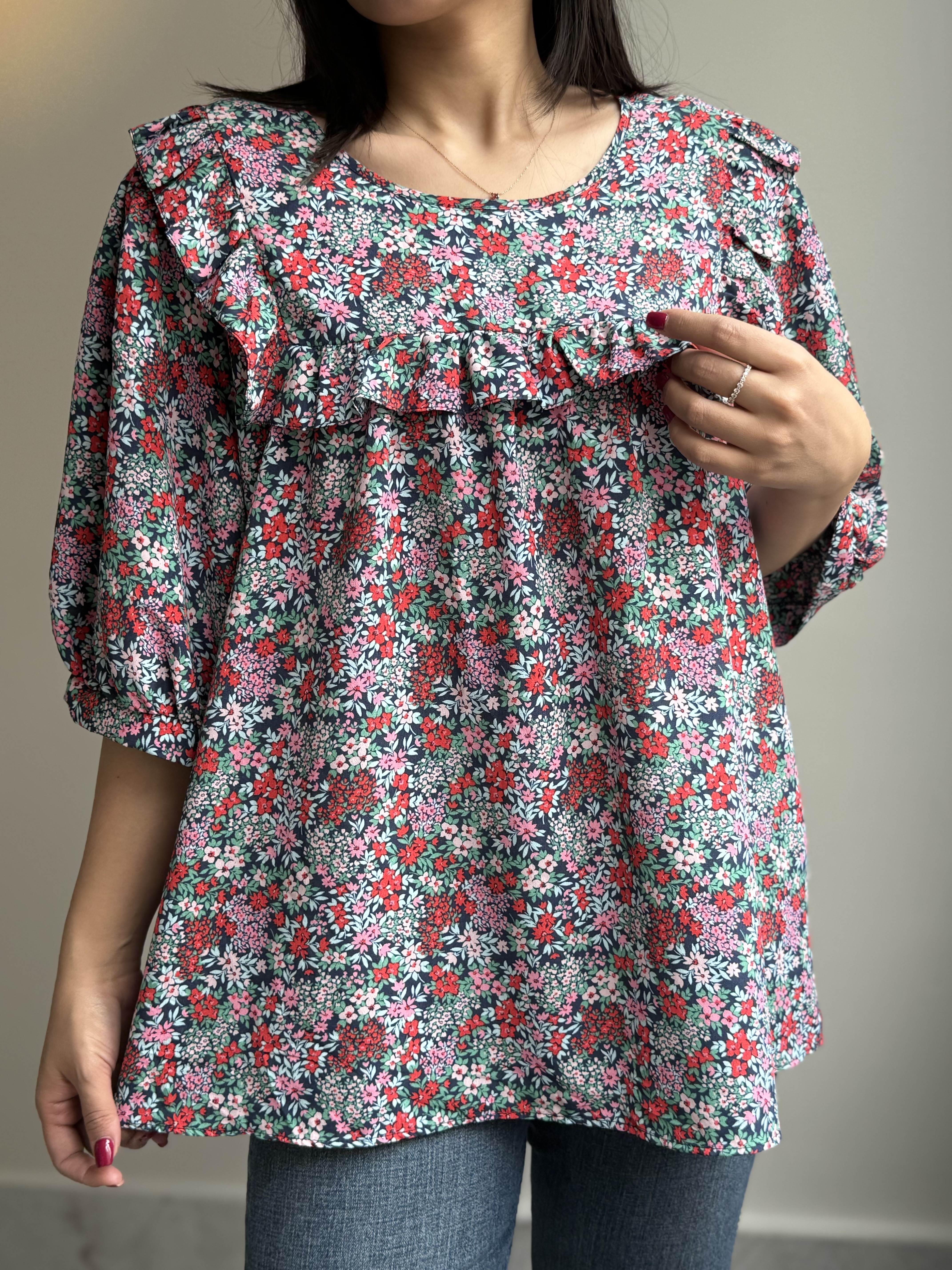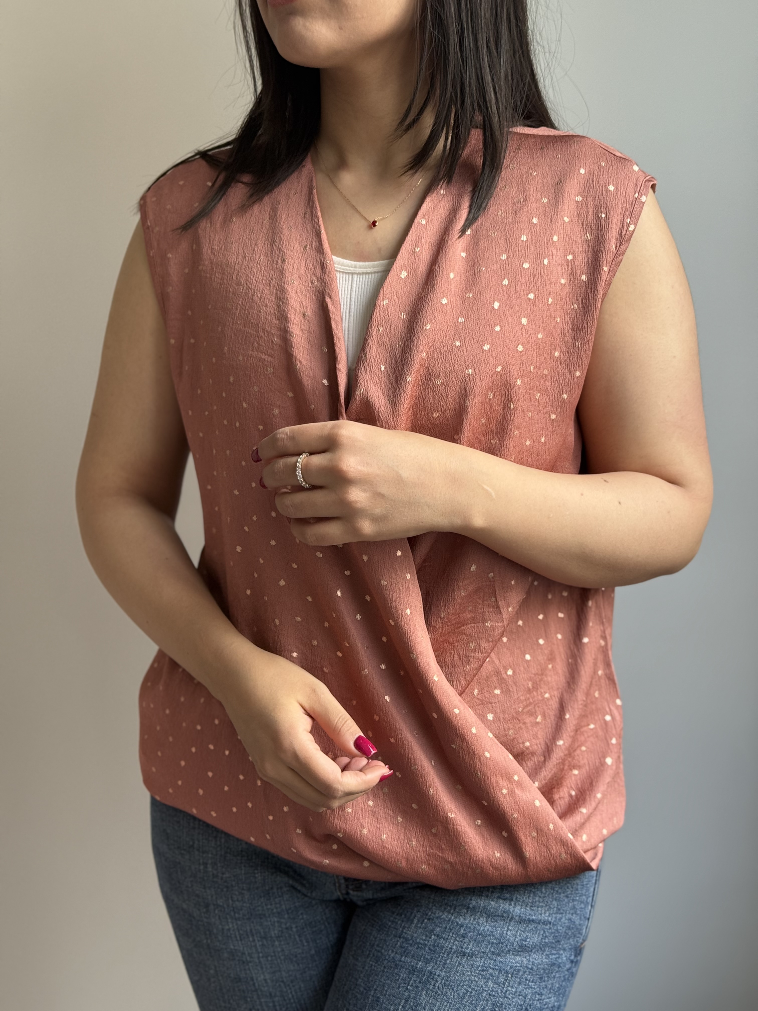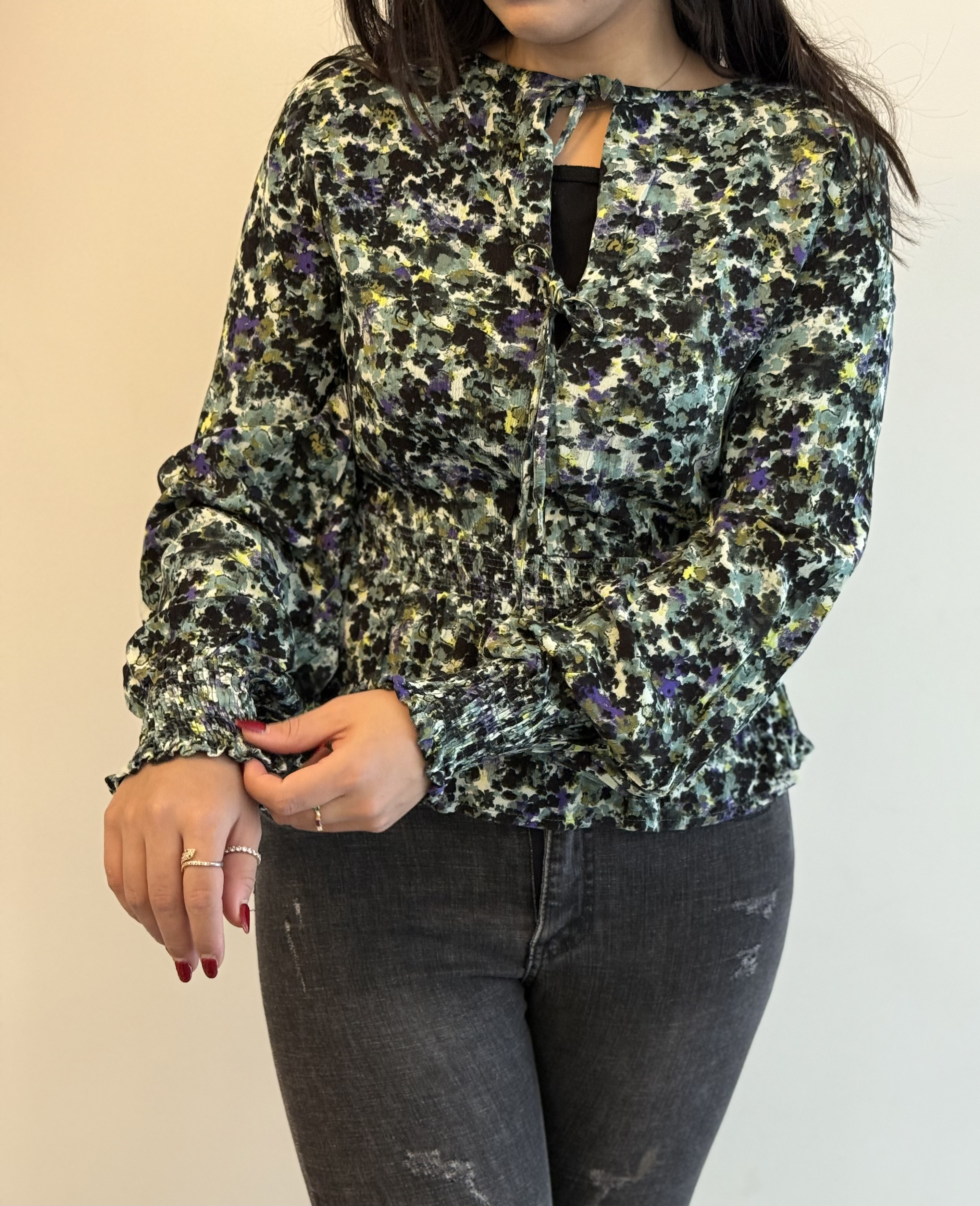شومیز کرپ آستین پاپیونی رنگ کاربنی