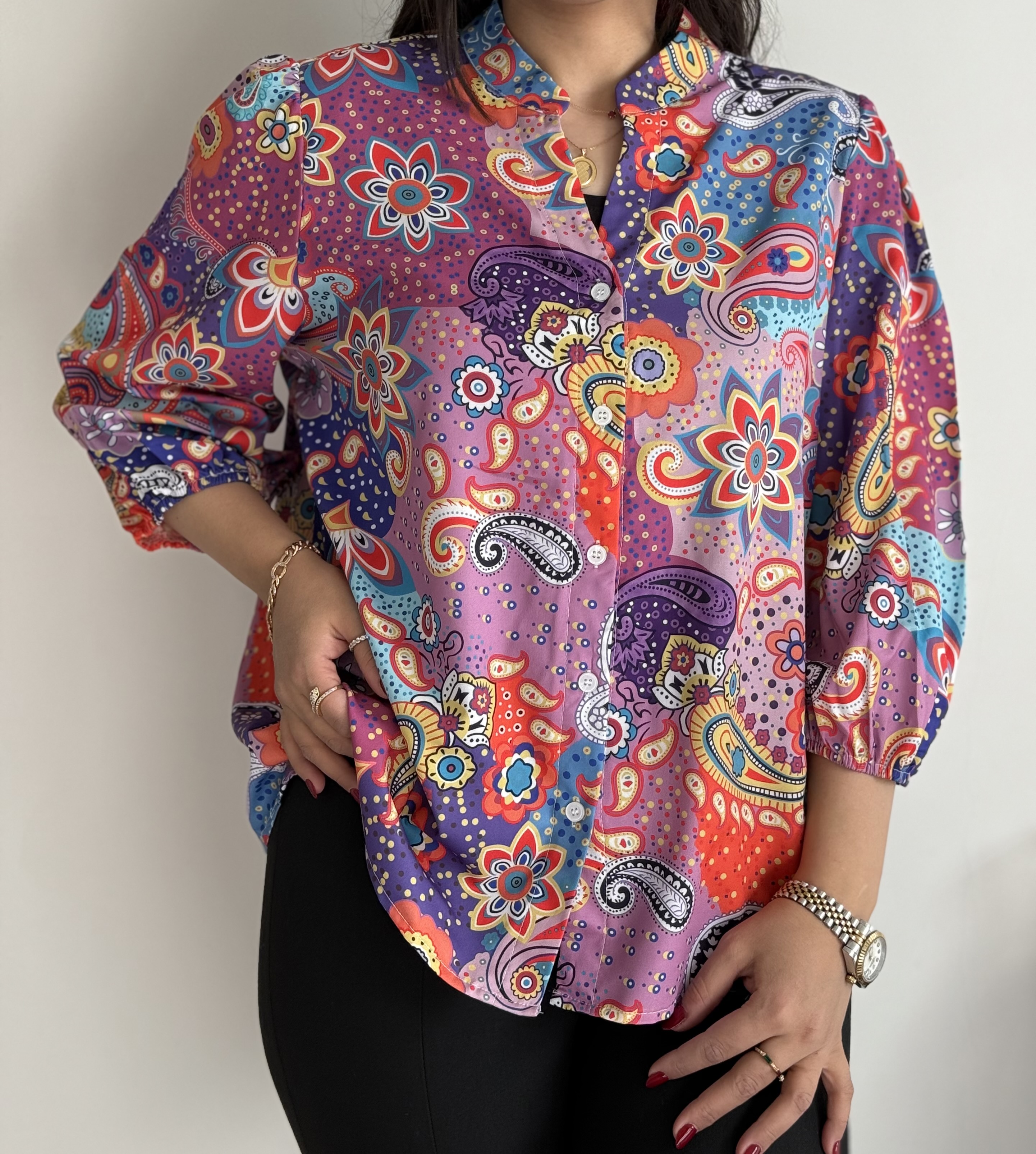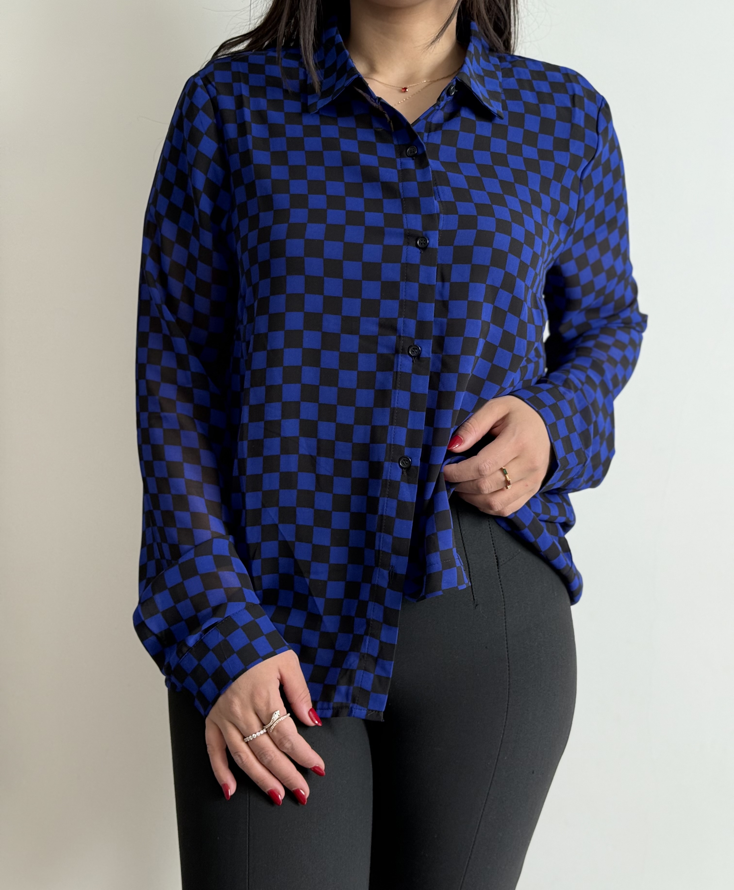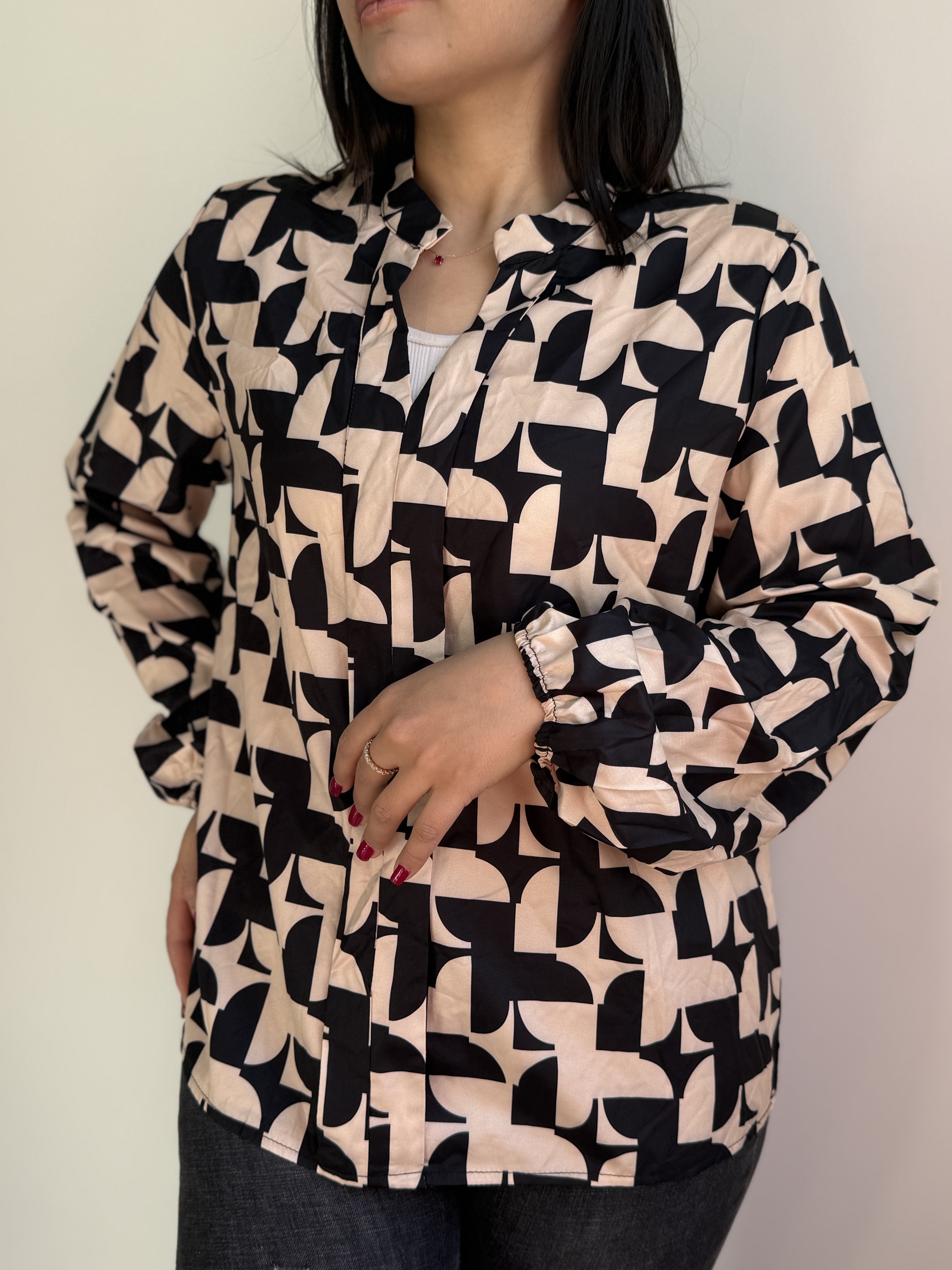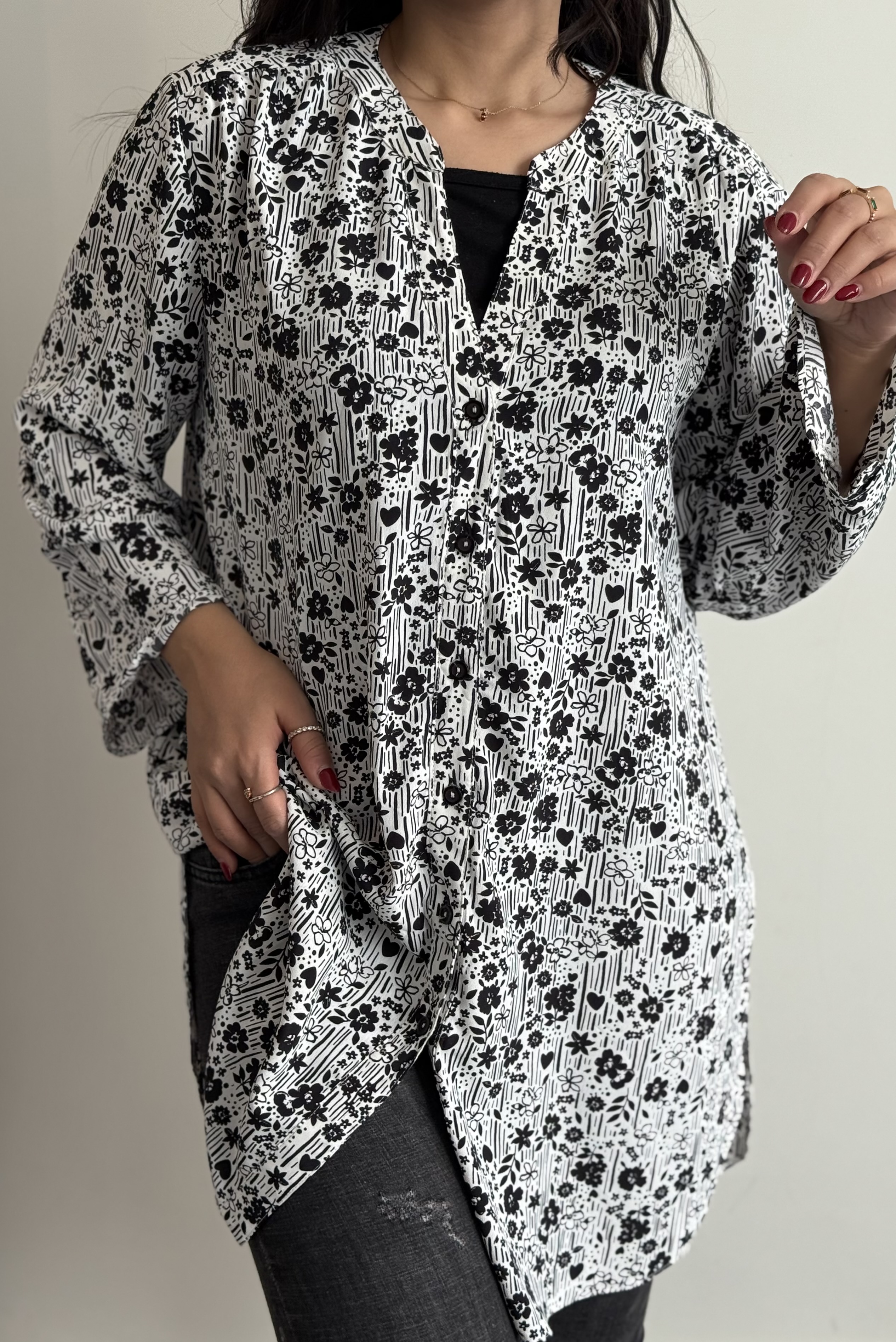 شومیز کرپ آستین دو دکمه مدل پیراهنی
