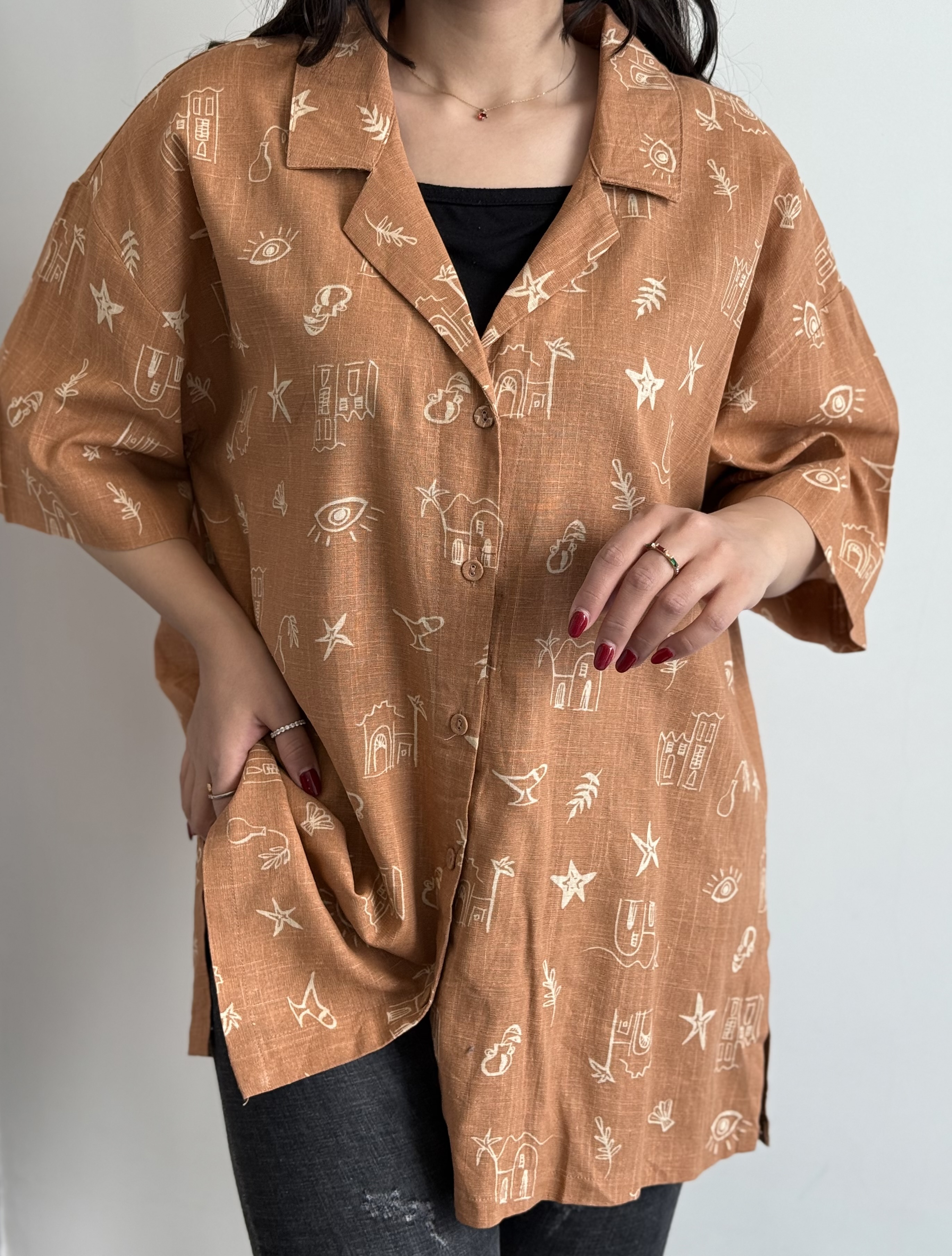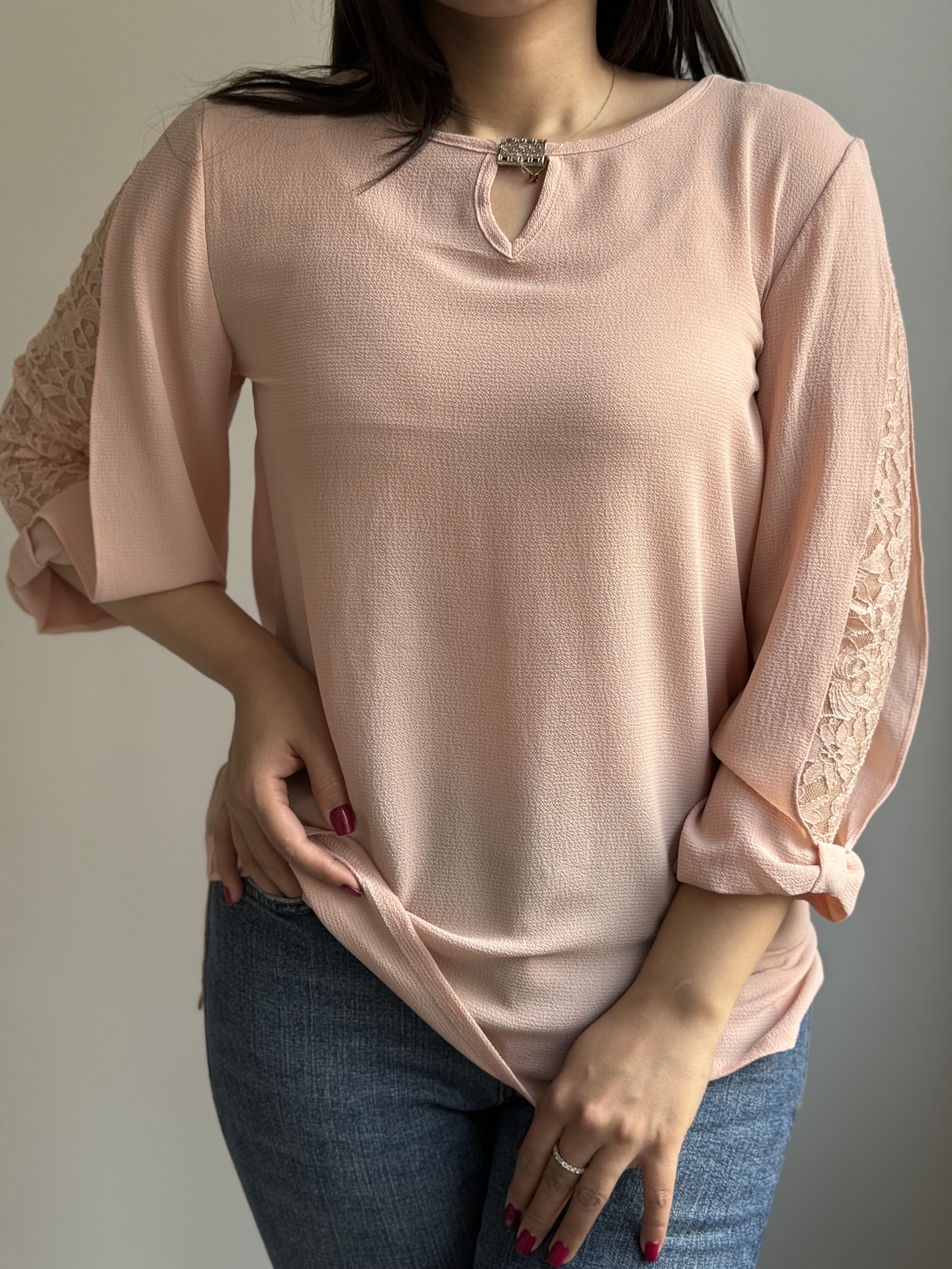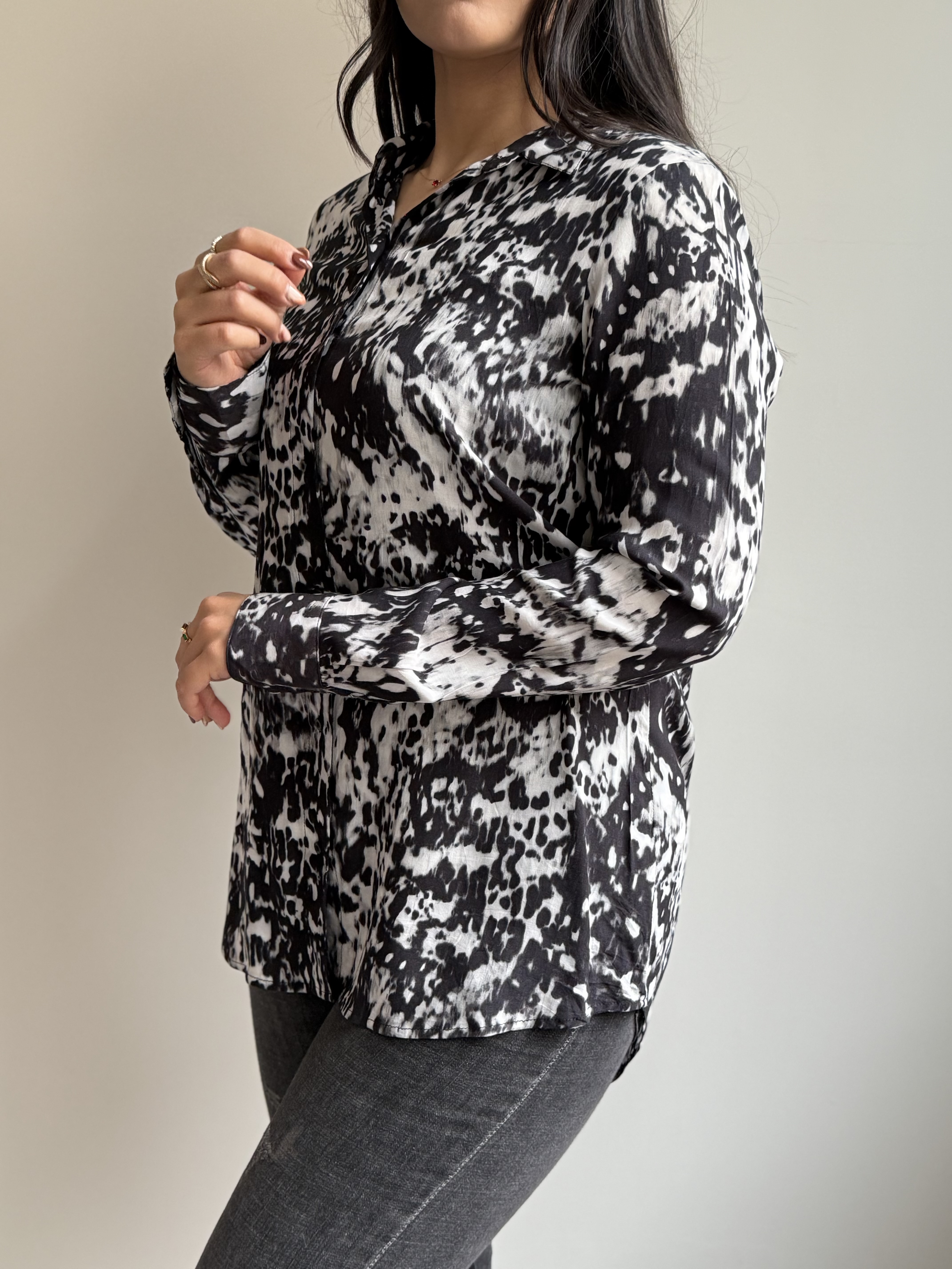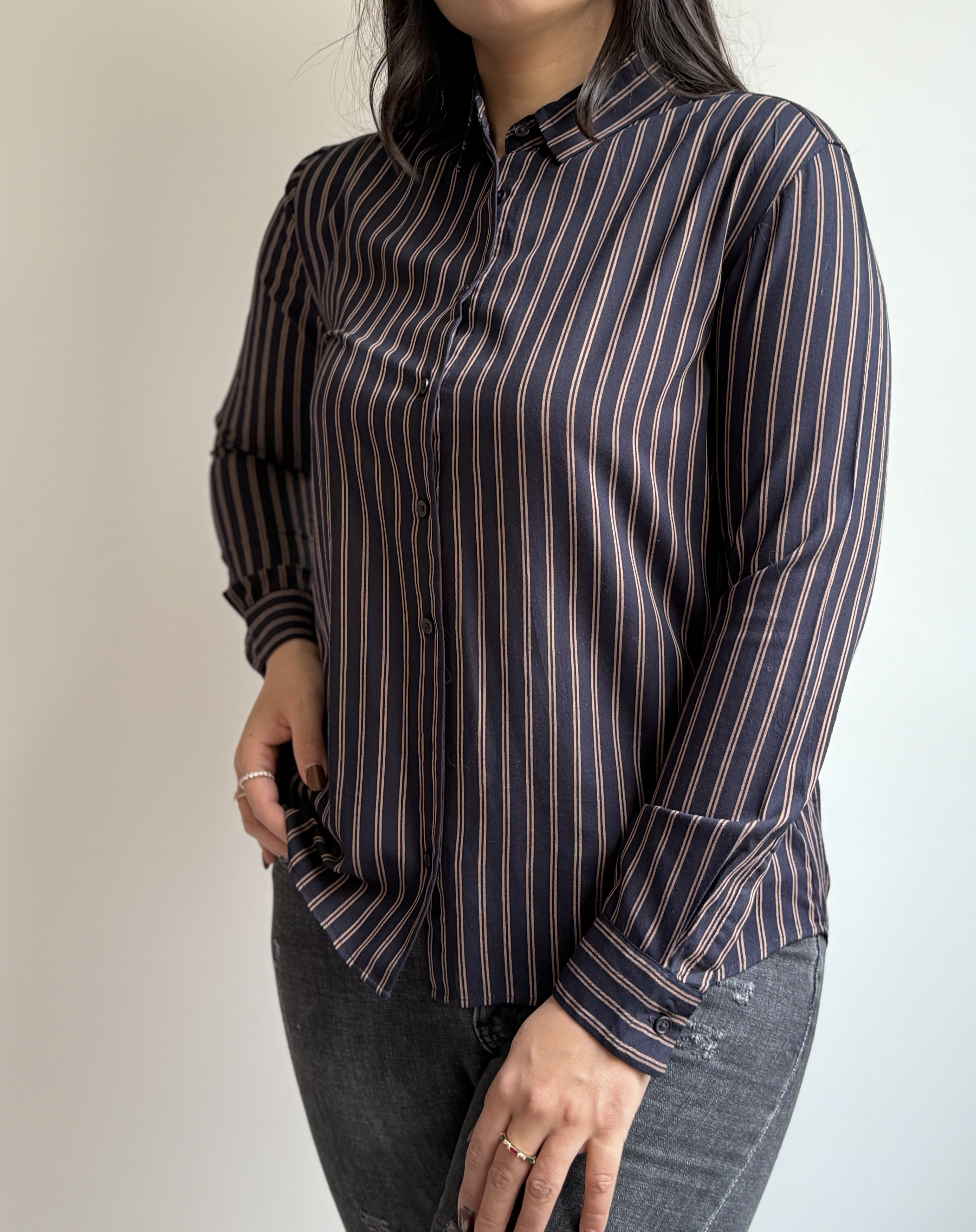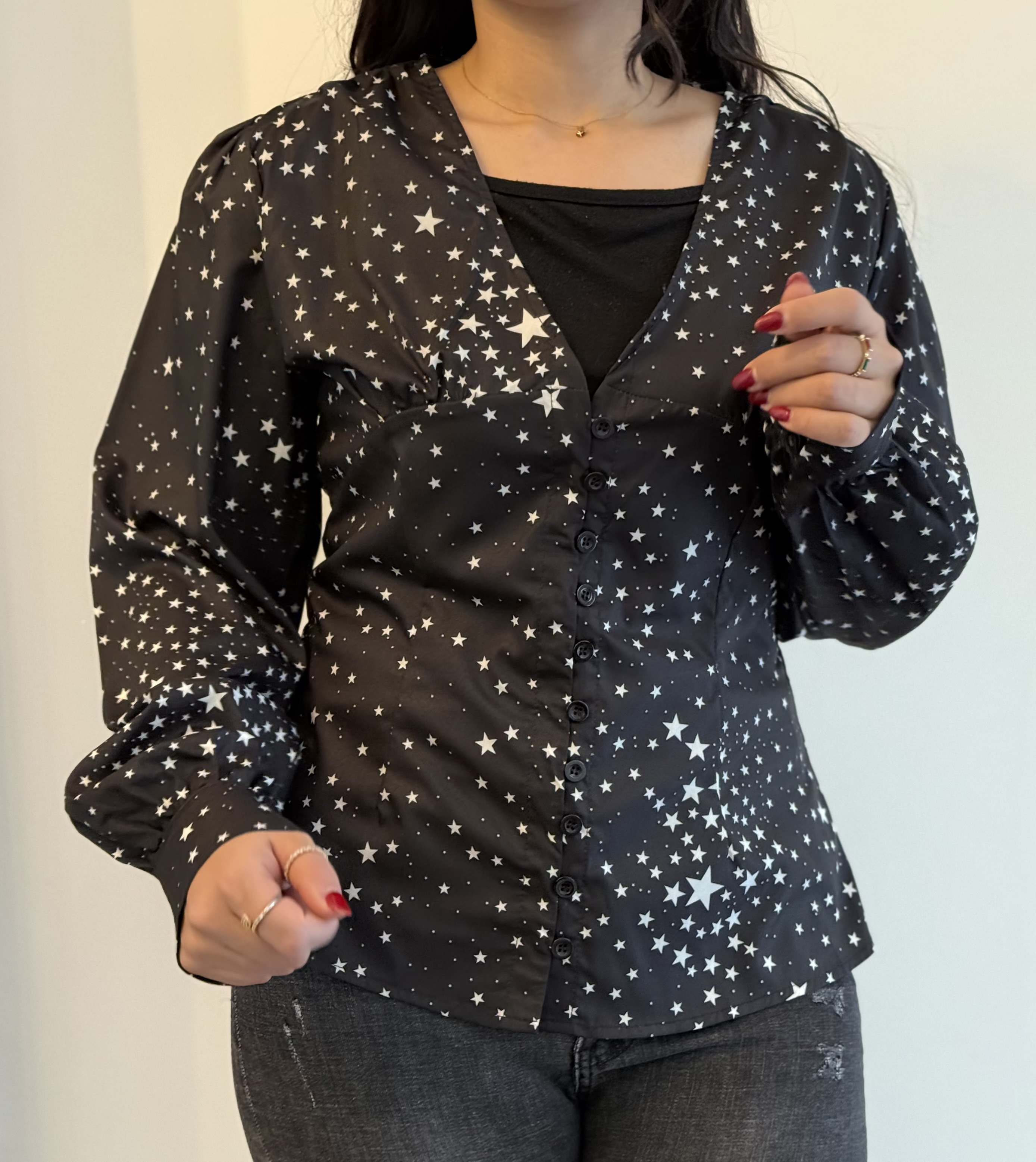 شومیز کرپ آستین دو دکمه مدل پیراهنی