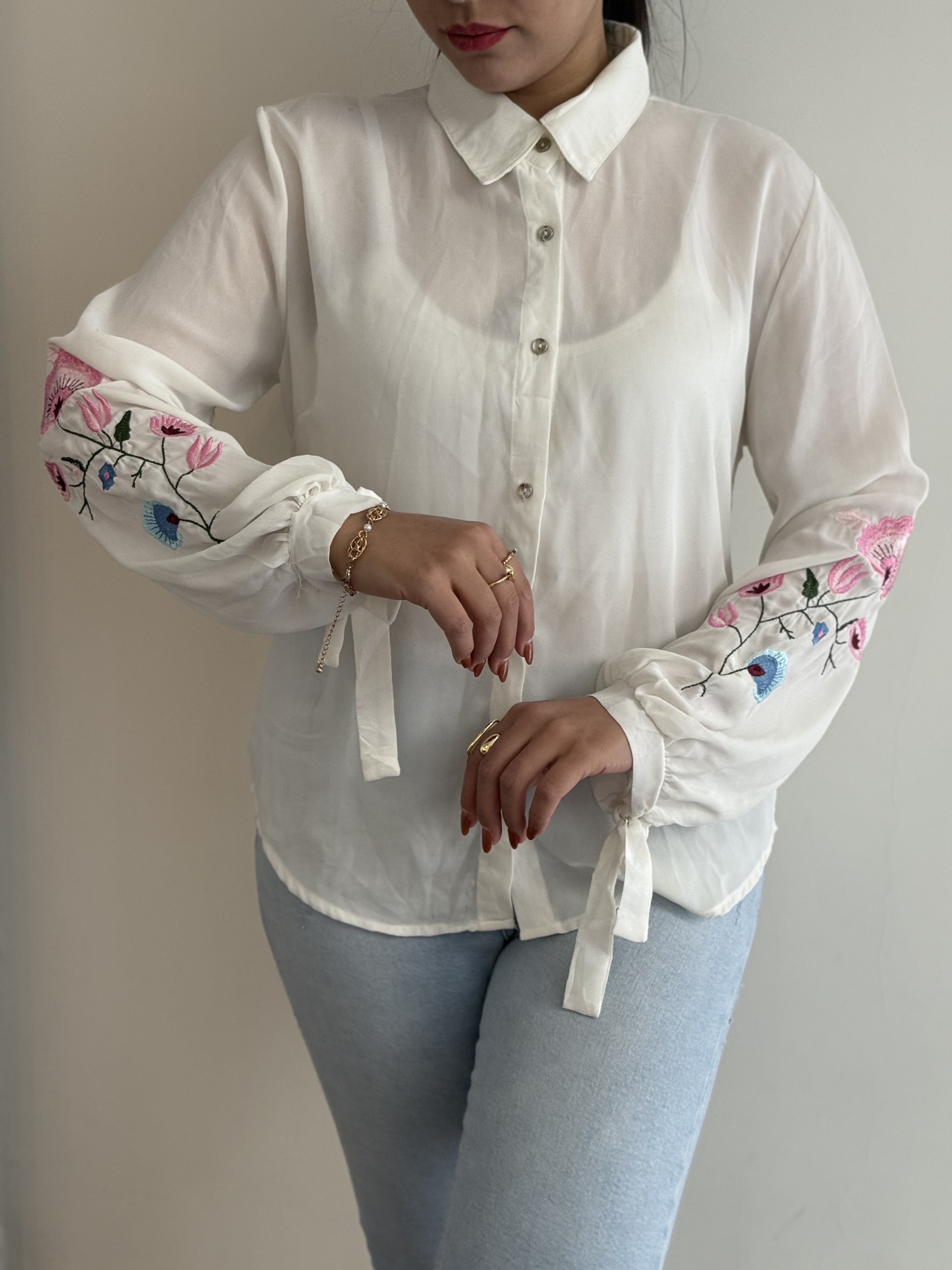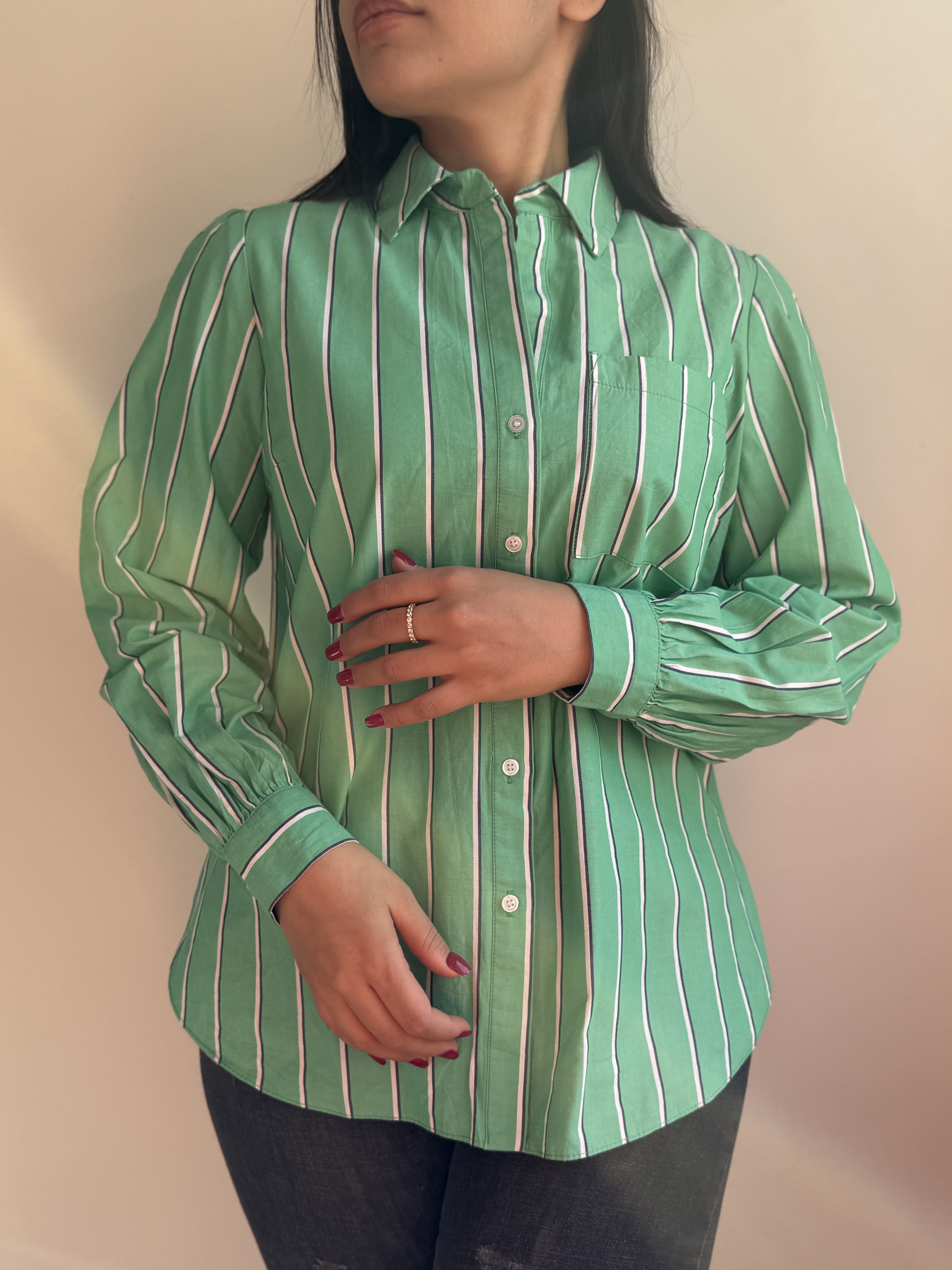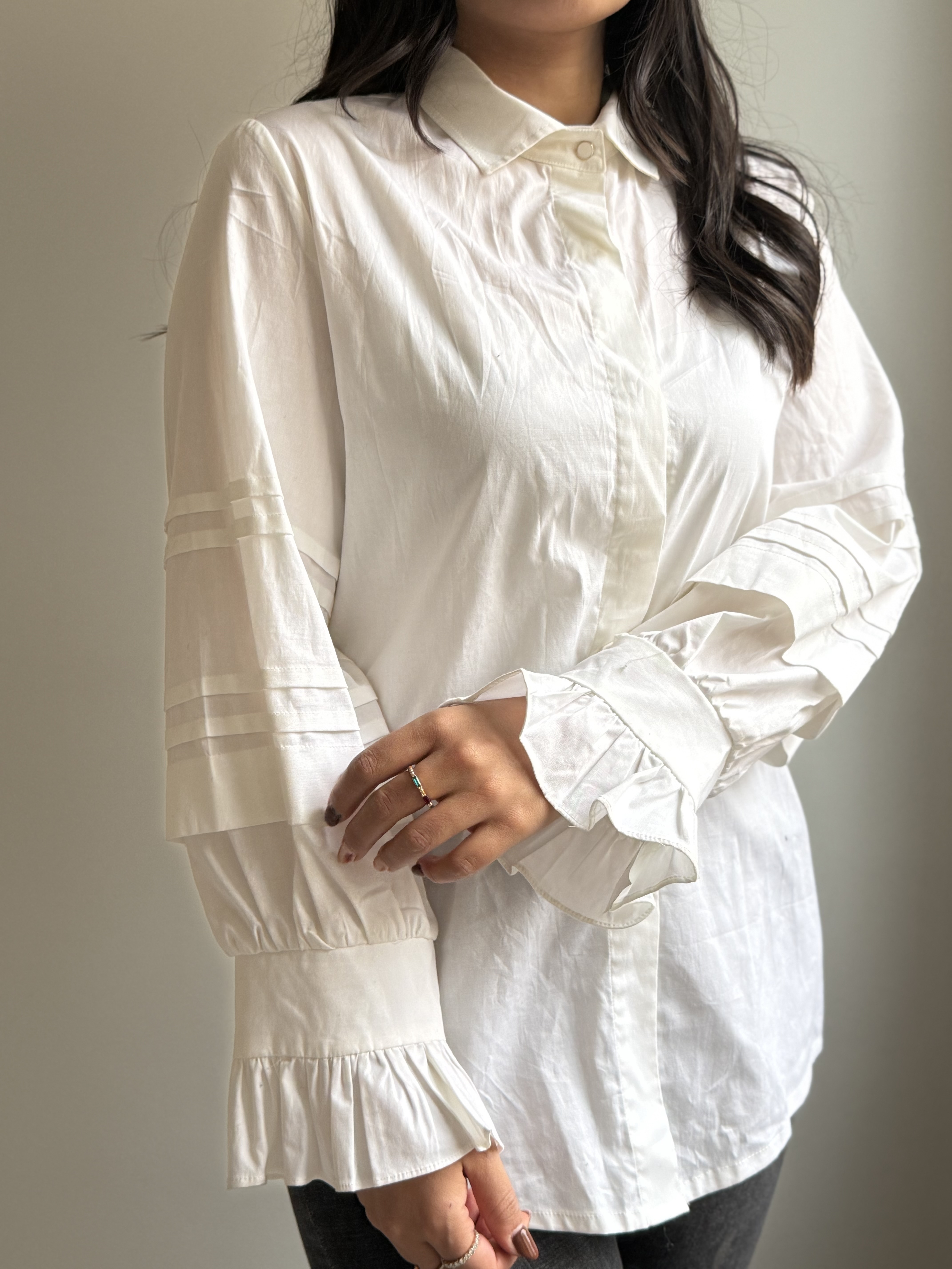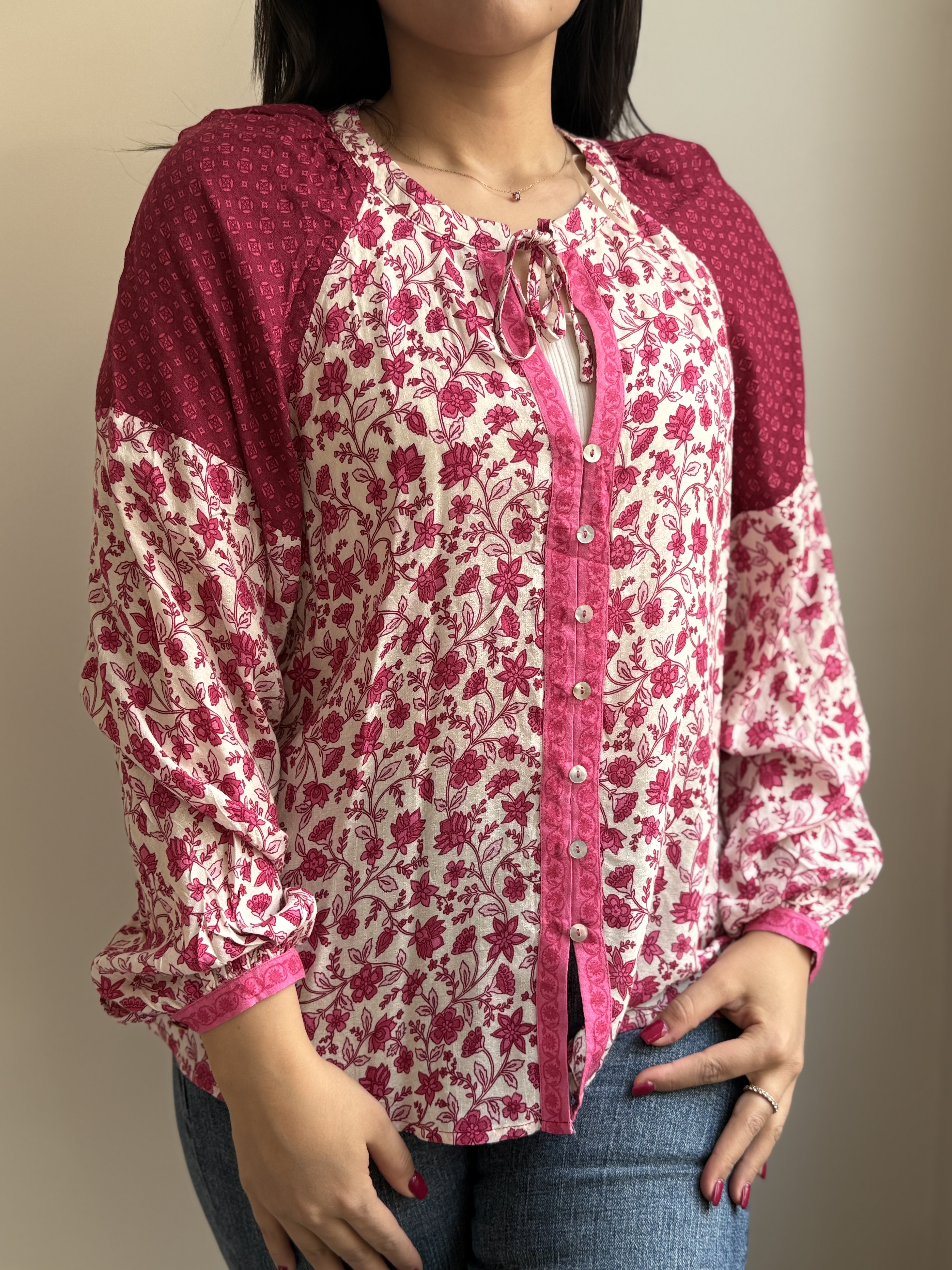 شومیز کرپ آستین دو دکمه مدل پیراهنی