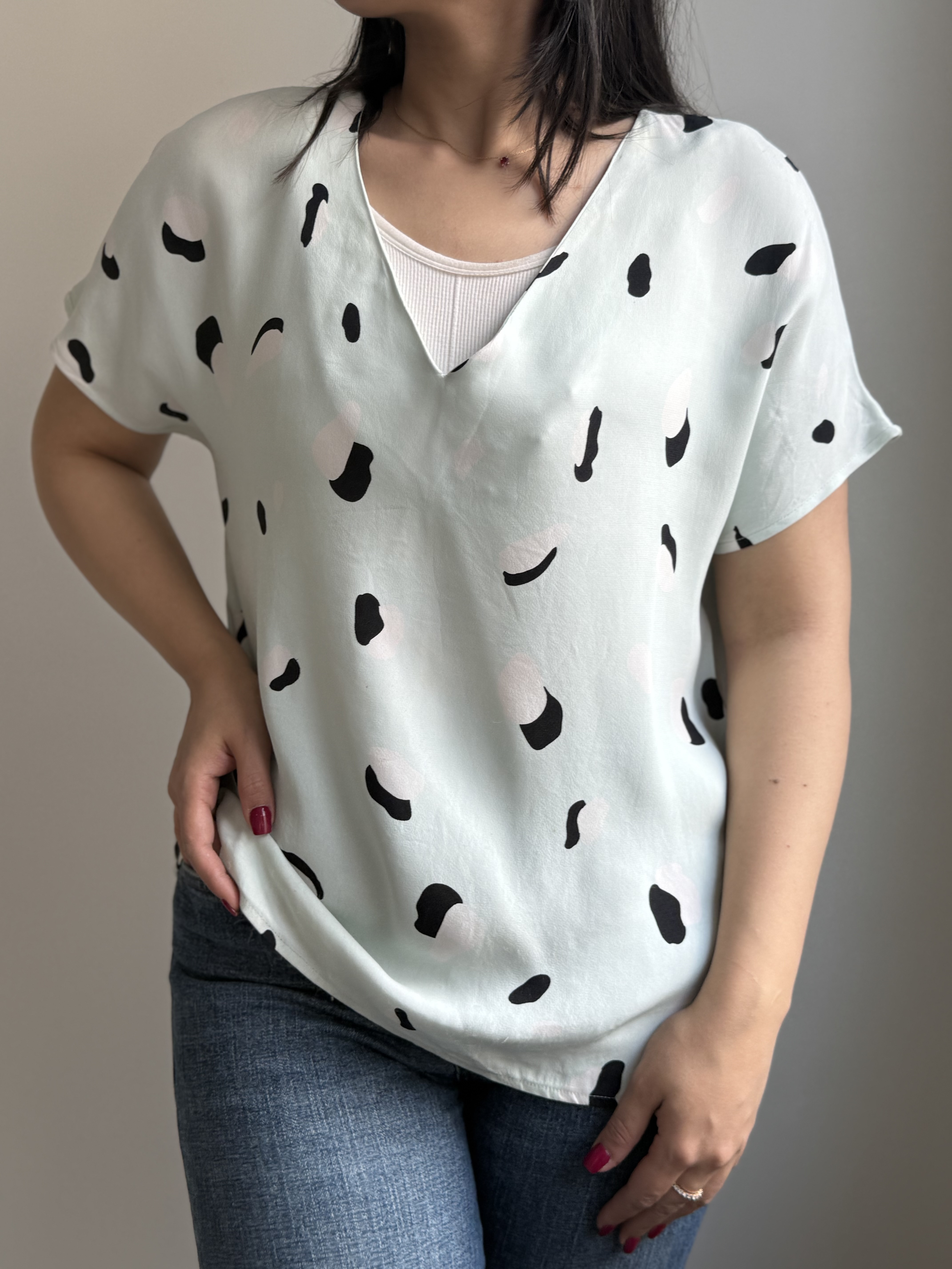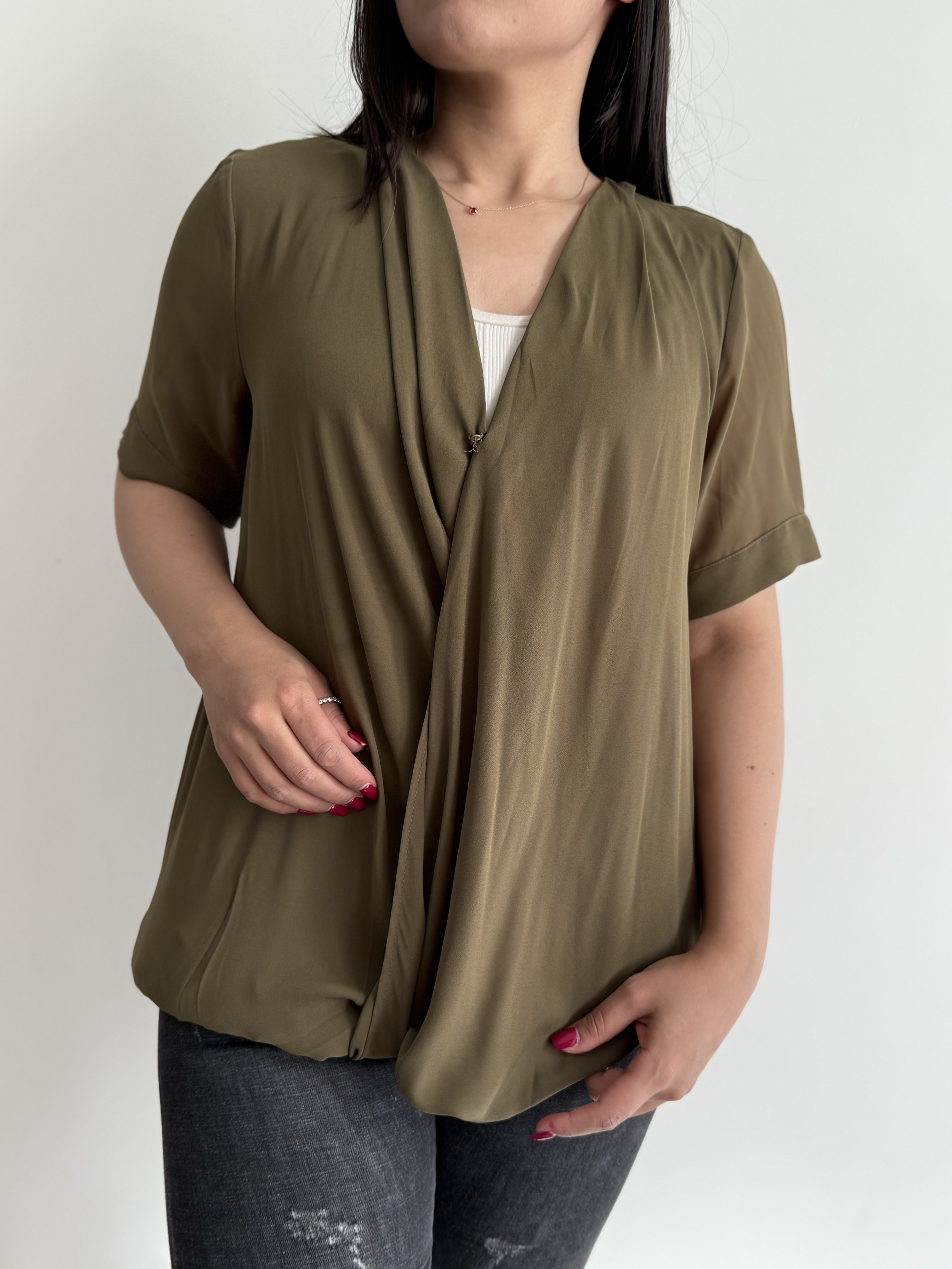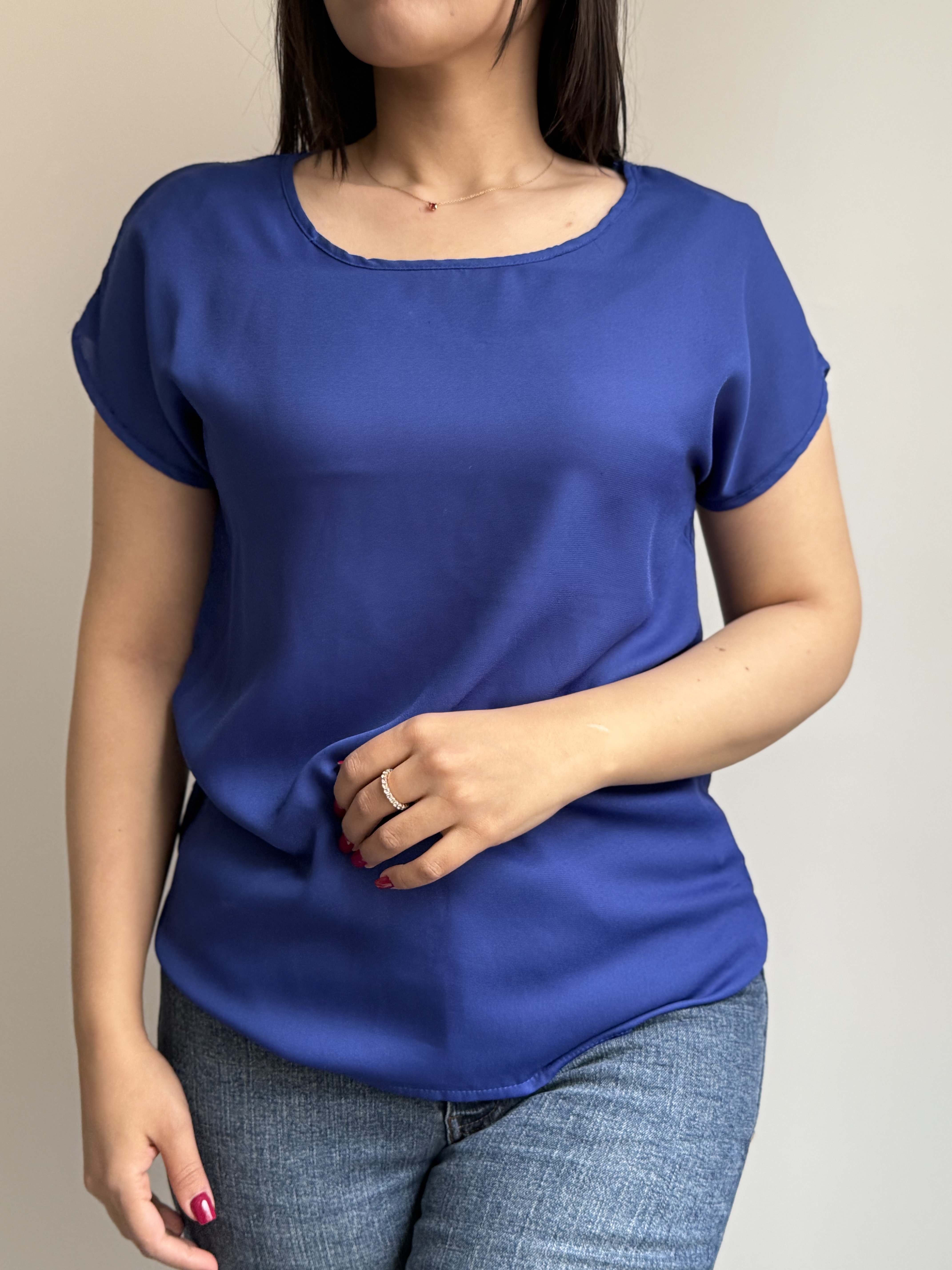 شومیز ساتن جنس ابرو بادی آستین کوتاه