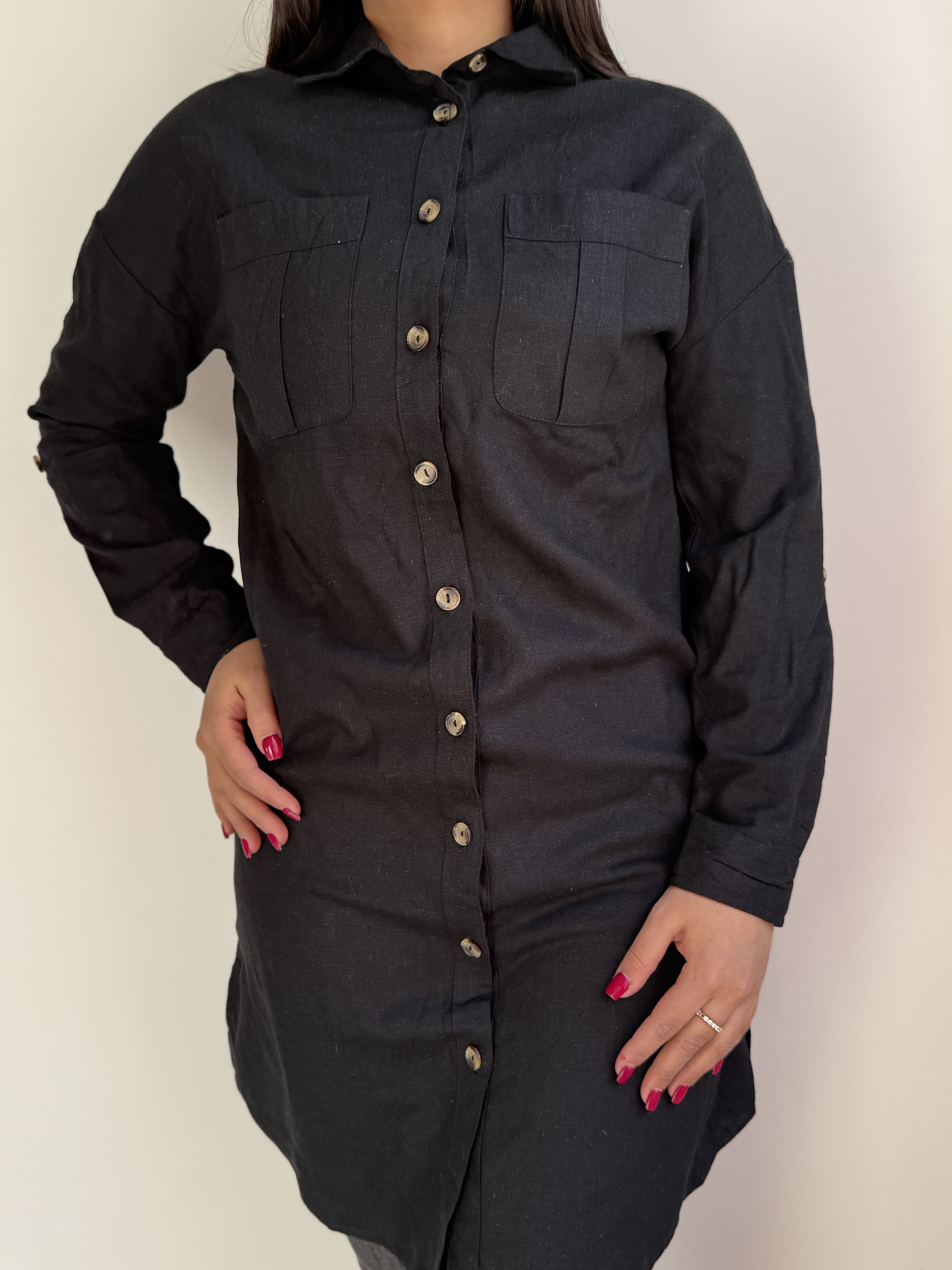 پیراهن مانتویی لینن