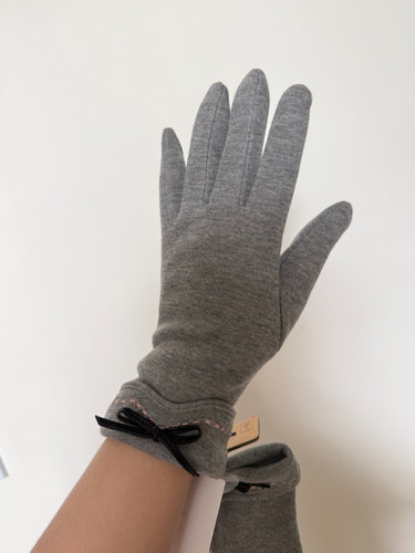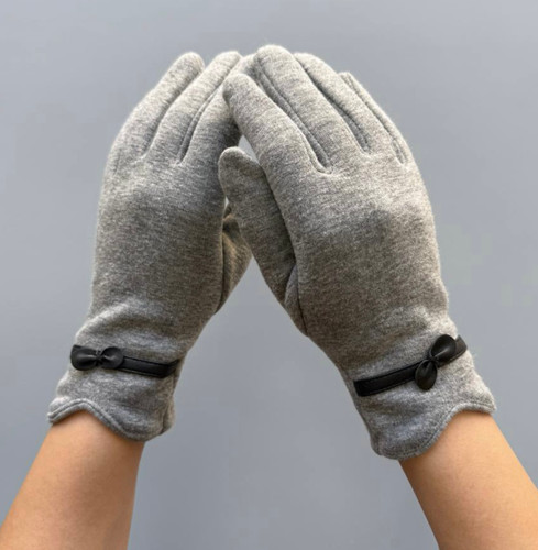 دستکش تو کرکی طوسی پاپیوندار