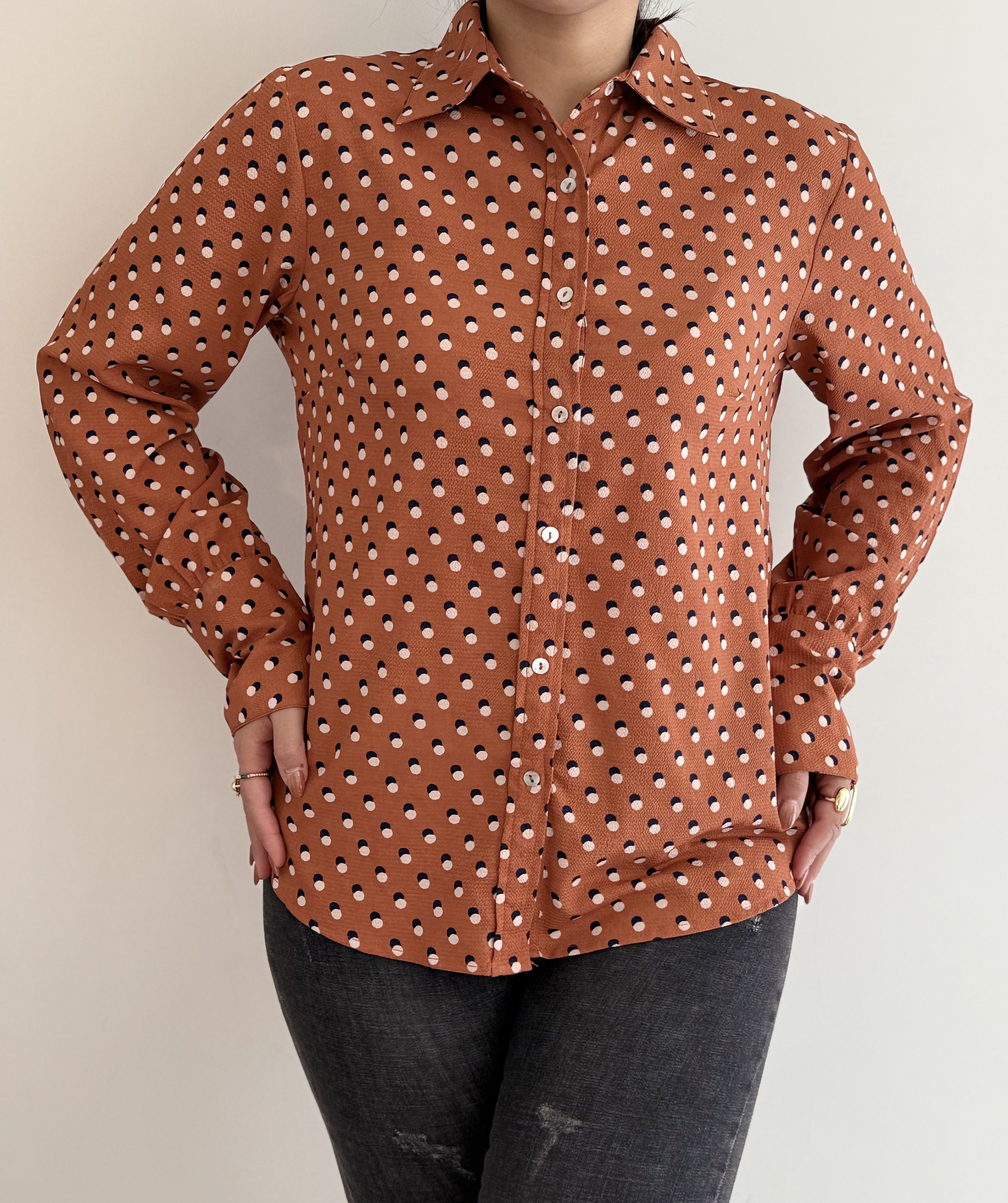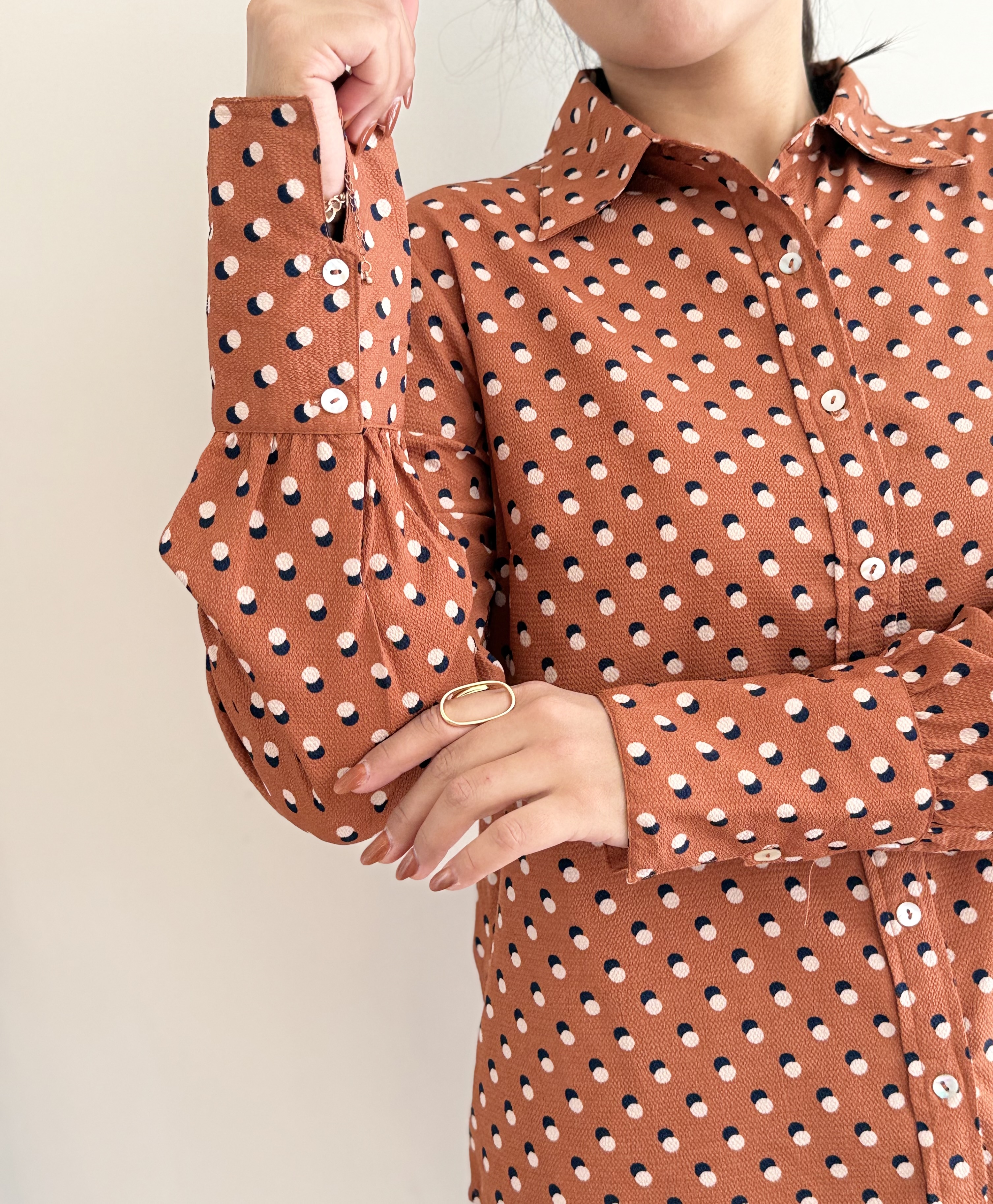 شومیز کرپ آستین دو دکمه مدل پیراهنی