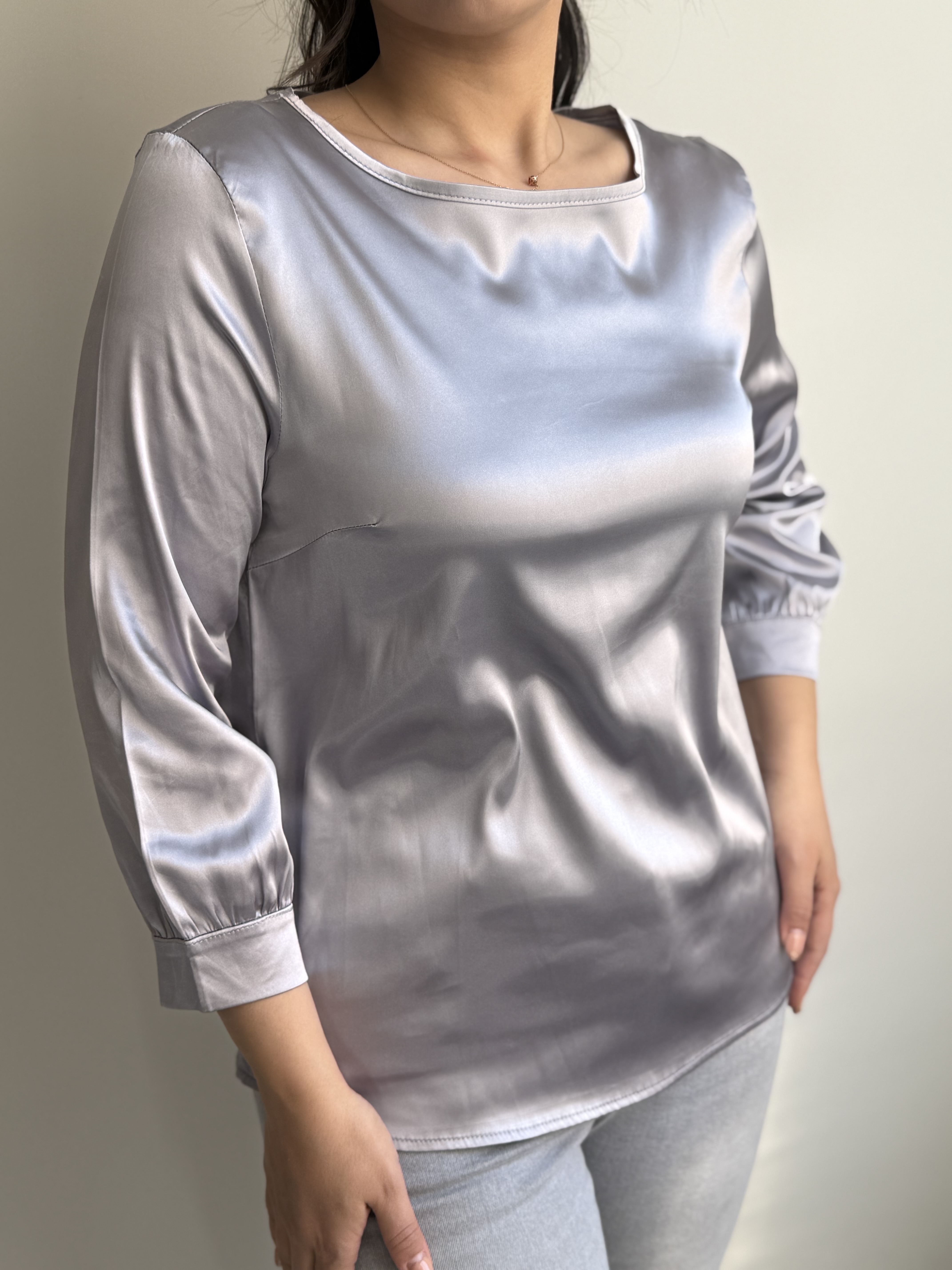 شومیز ساتن نقره ای