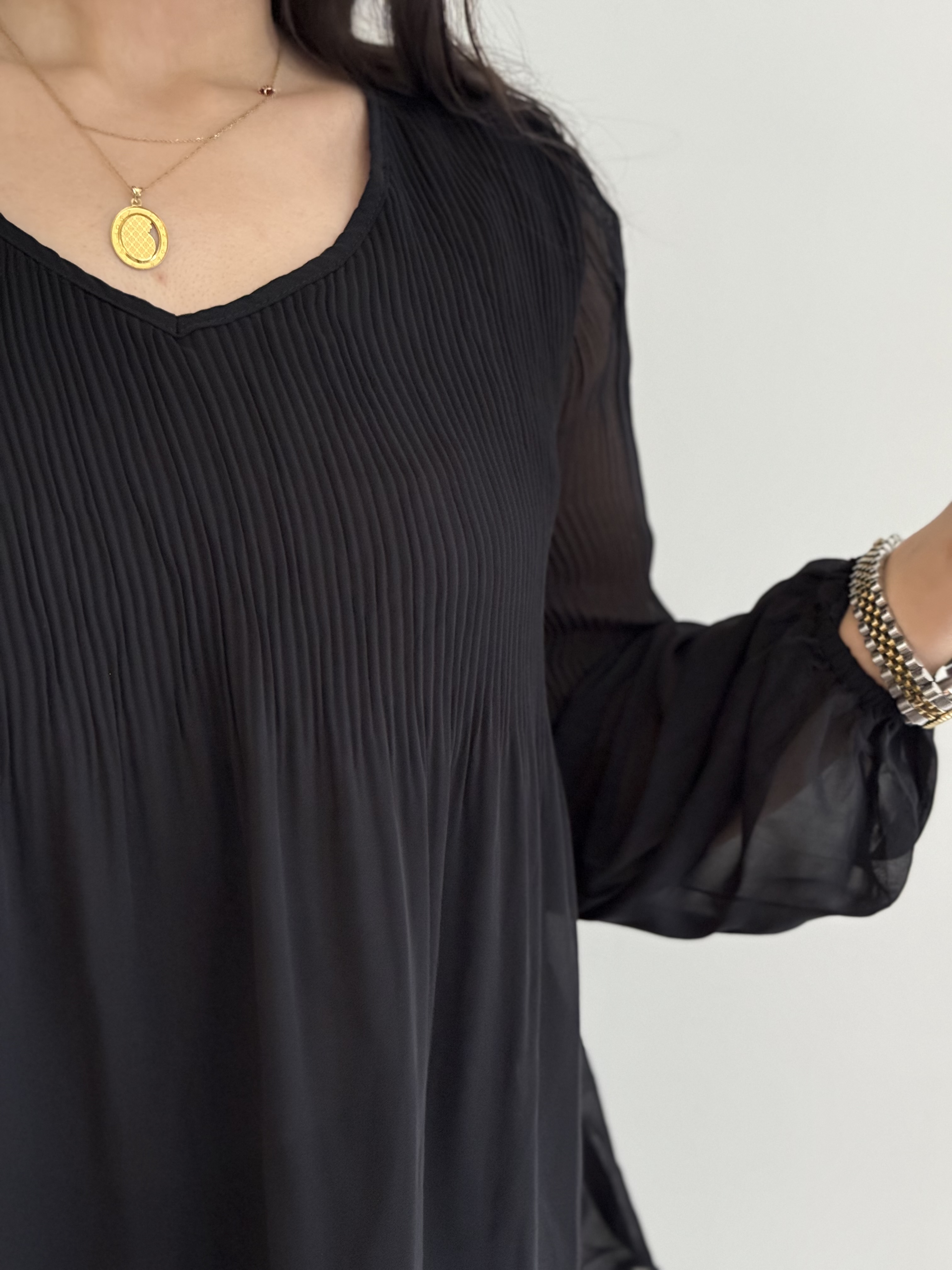 شومیز حریر مشکی آستردا مجلسی پلیسه ای