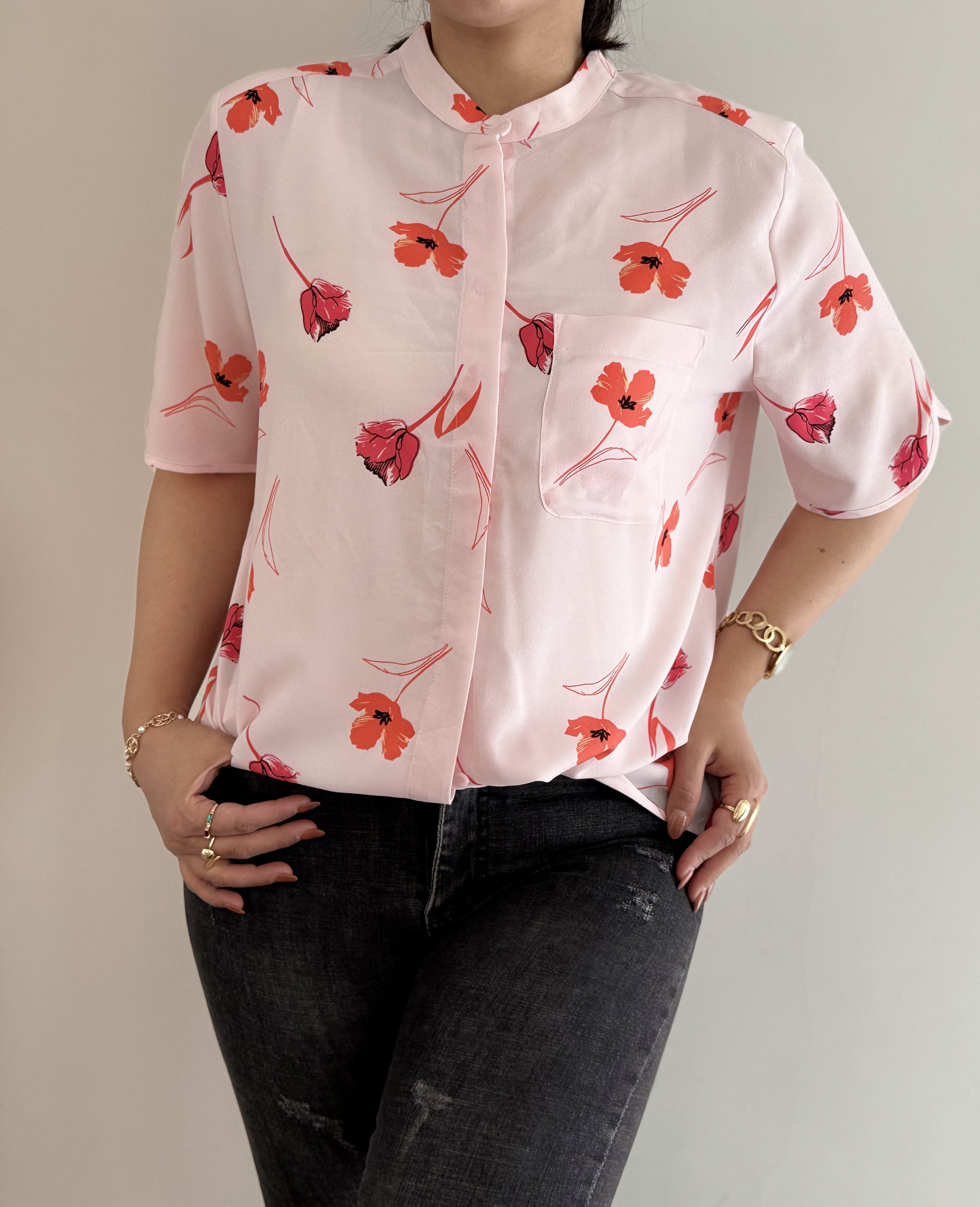 شومیز کرپ آستین پاپیونی رنگ کاربنی