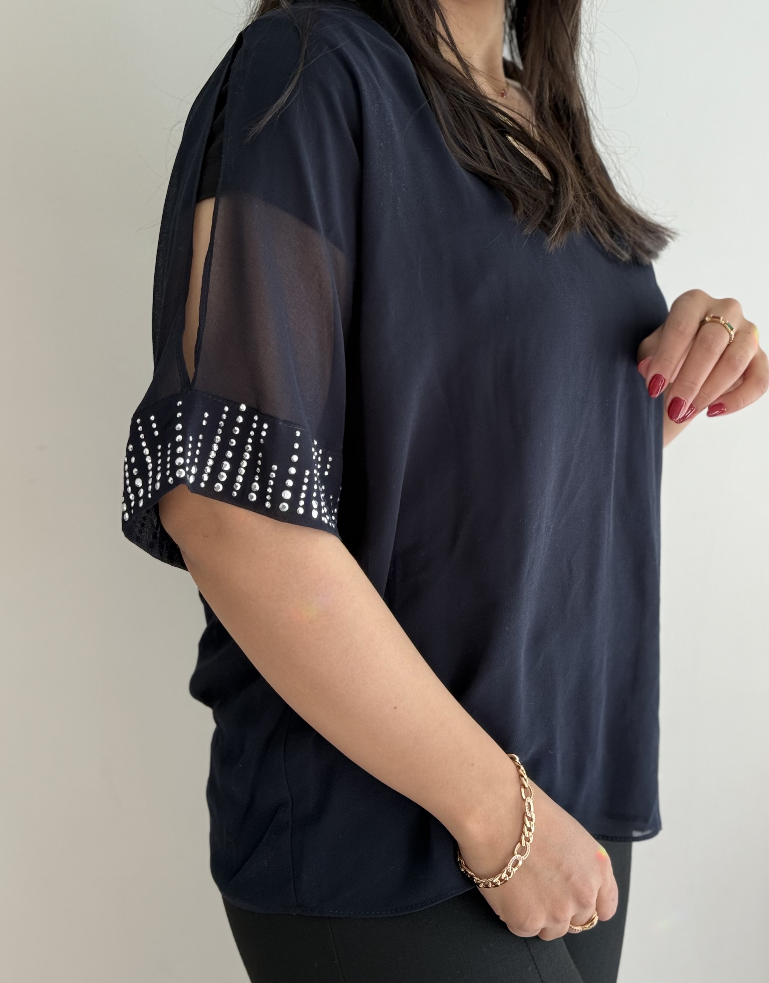 ناموجودشومیز حریر دولایه مجلسی نگین دار