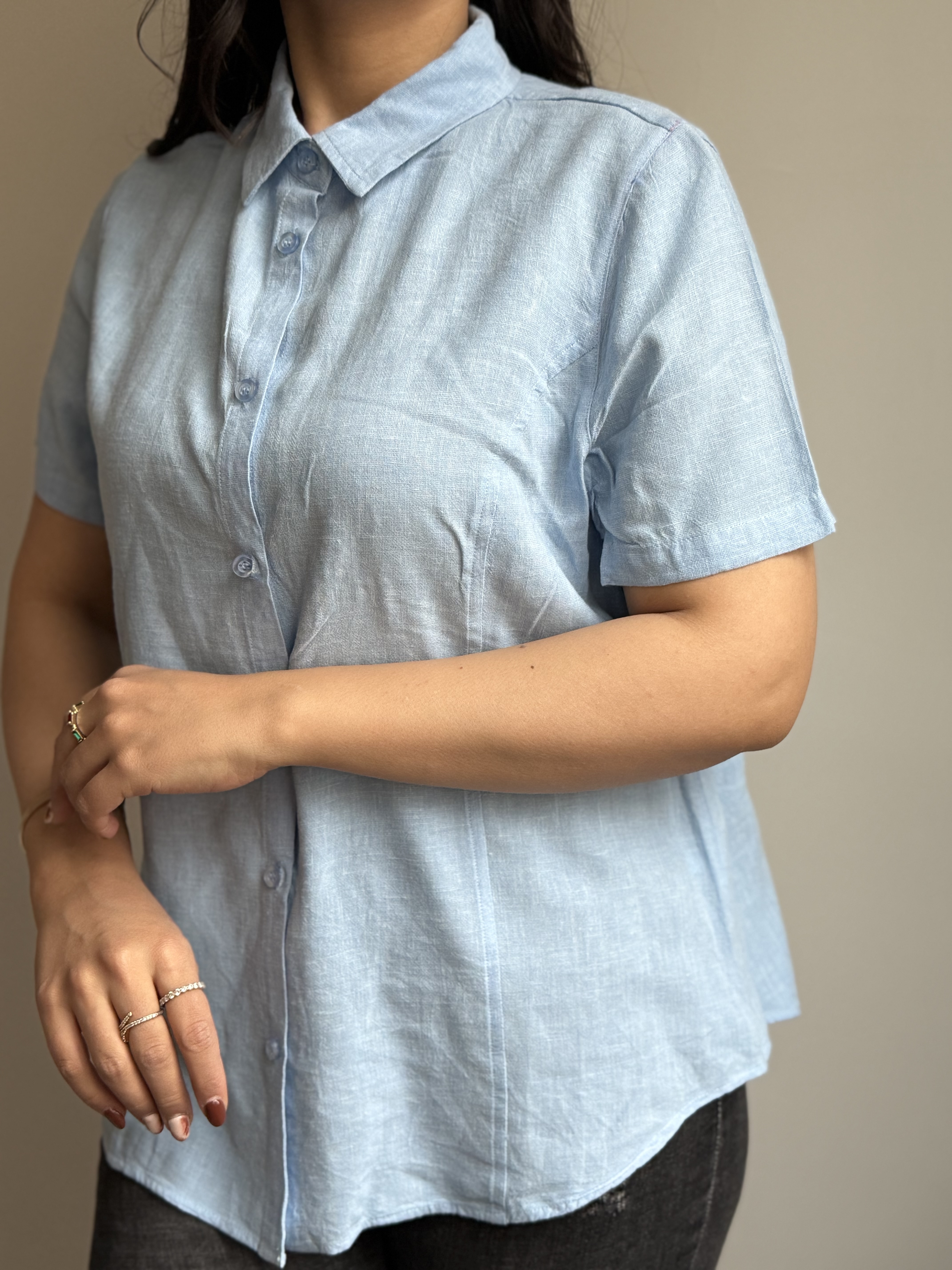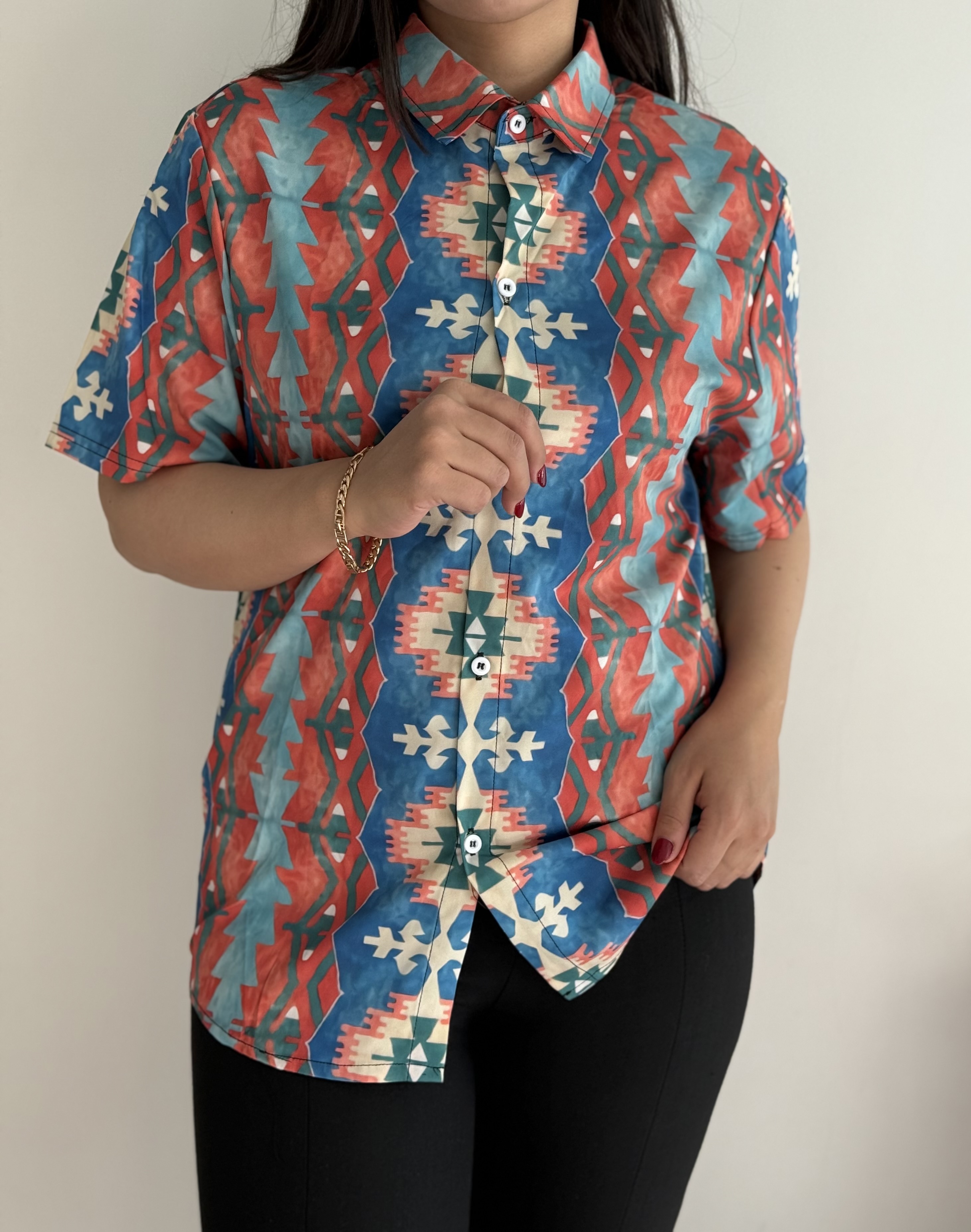 شومیز کرپ آستین دو دکمه مدل پیراهنی