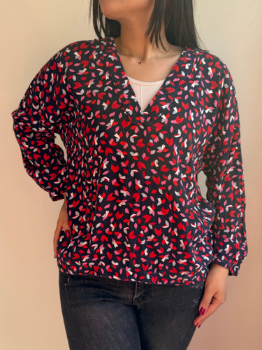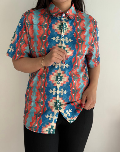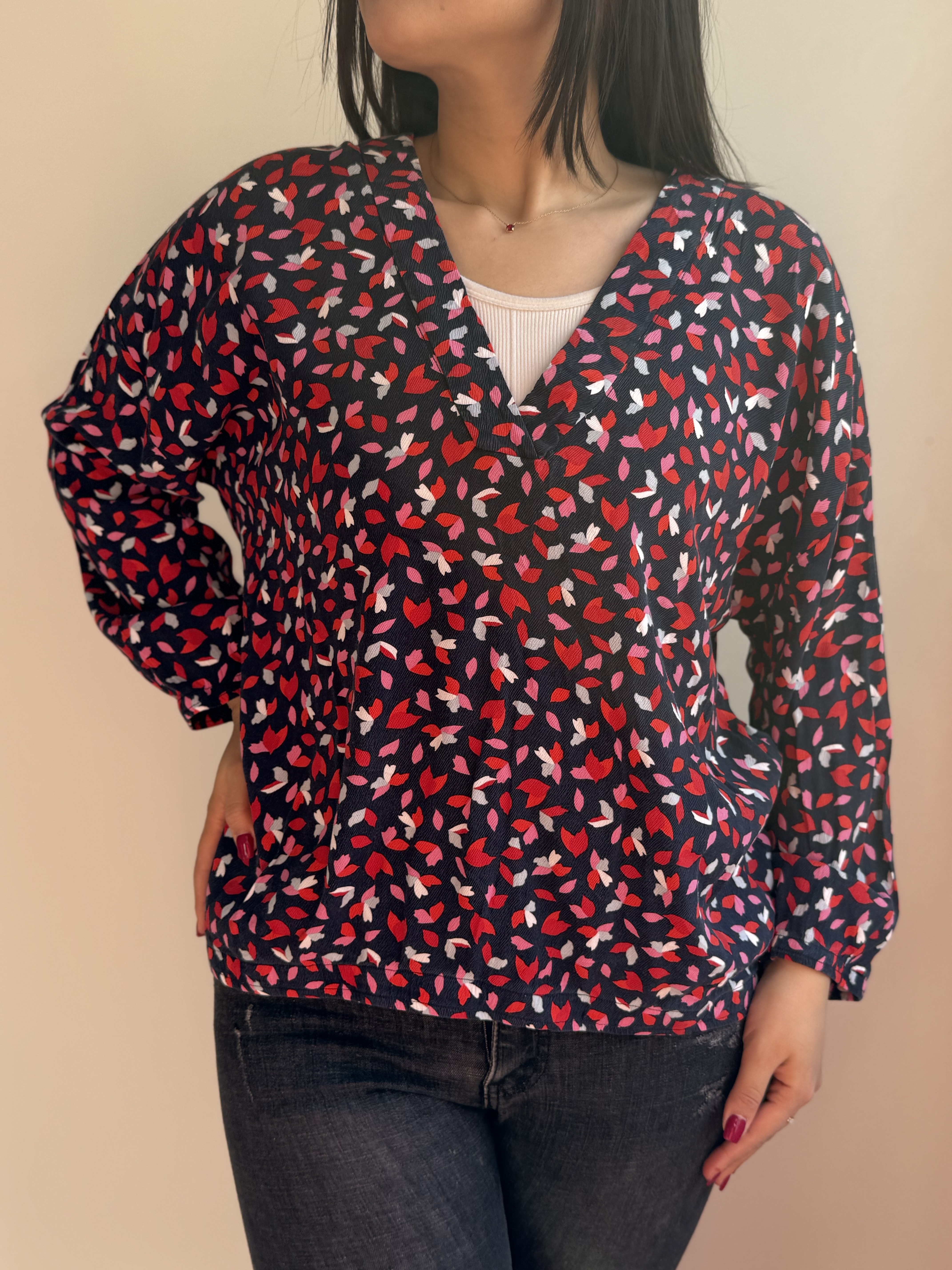 ناموجودشومیز کرپ گل لاله صورتی قرمز