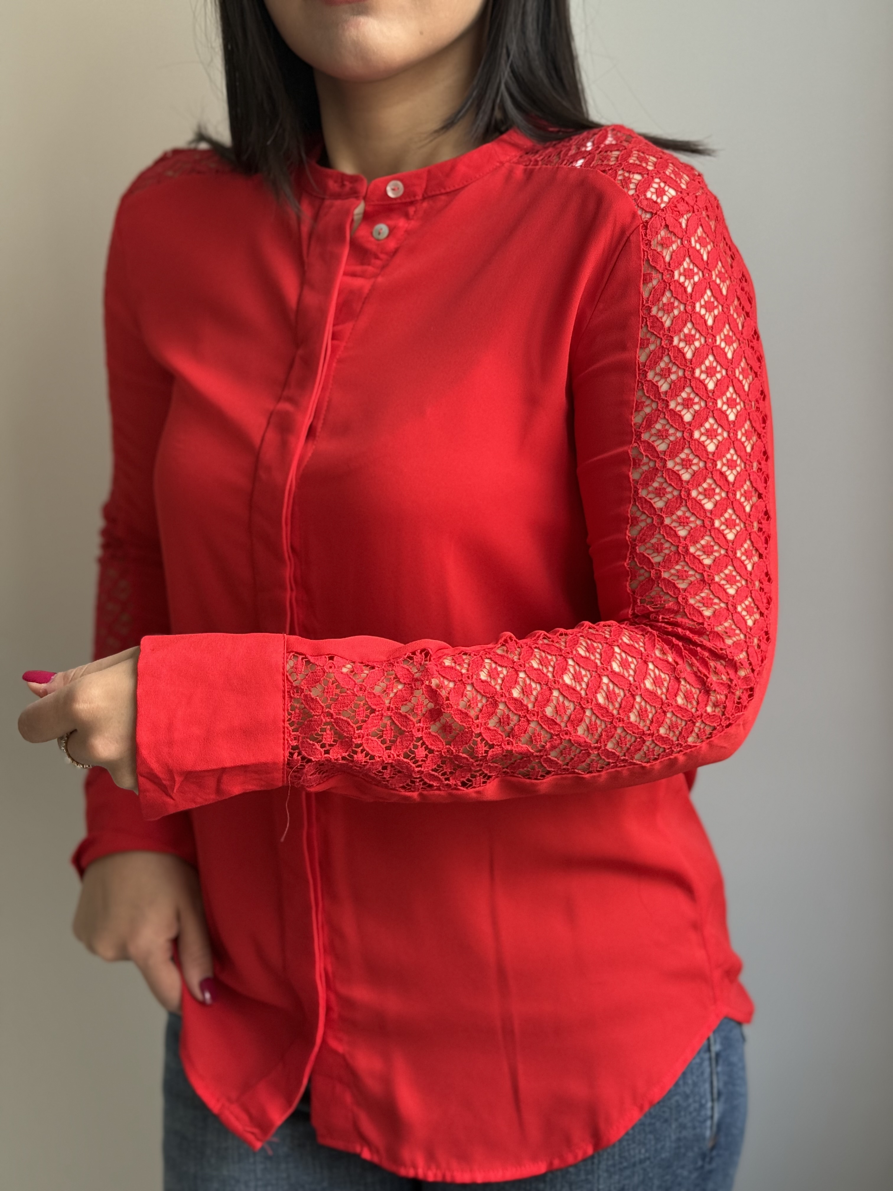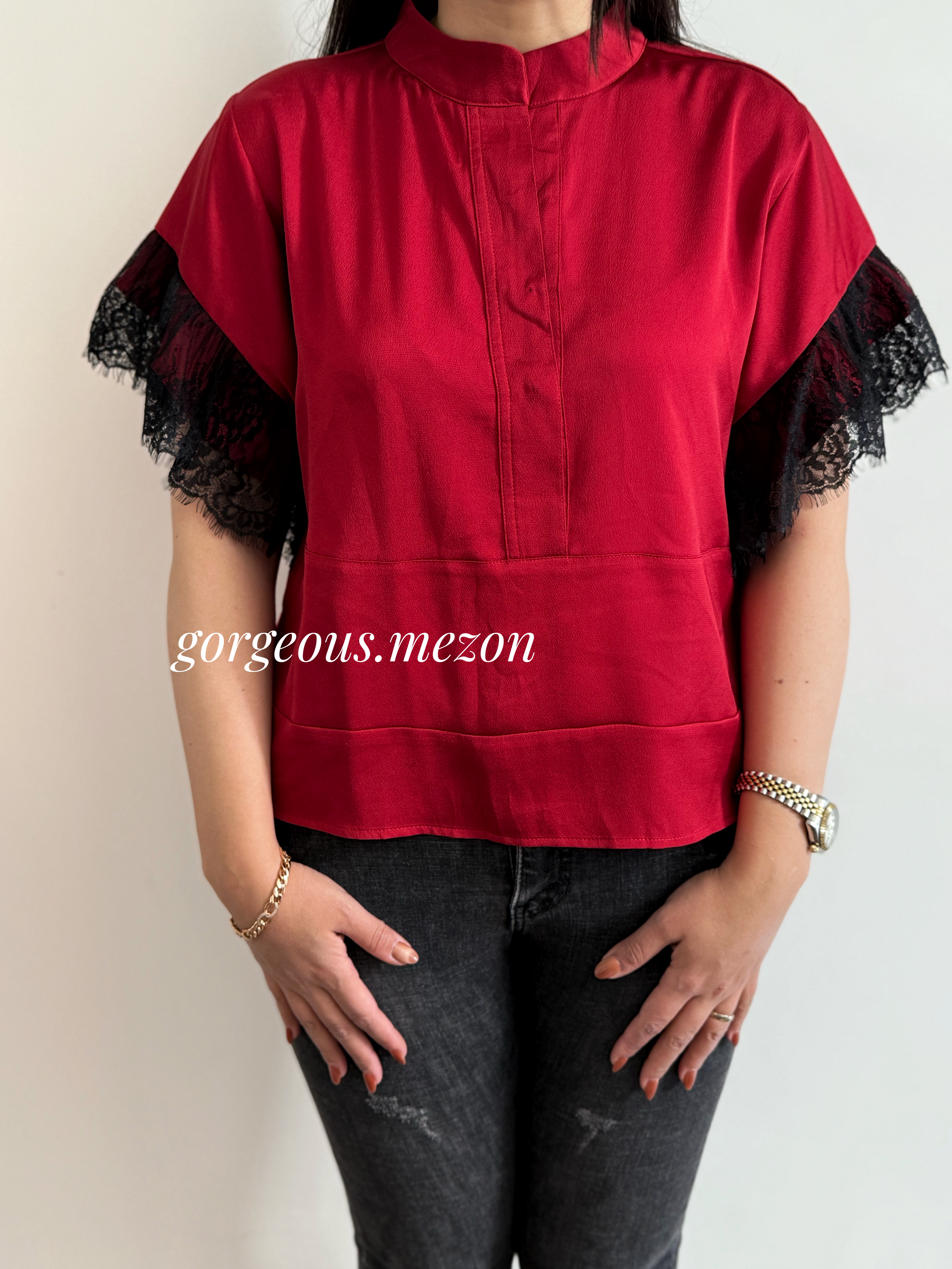ناموجودشومیز مجلسی قرمز آستین دانتل