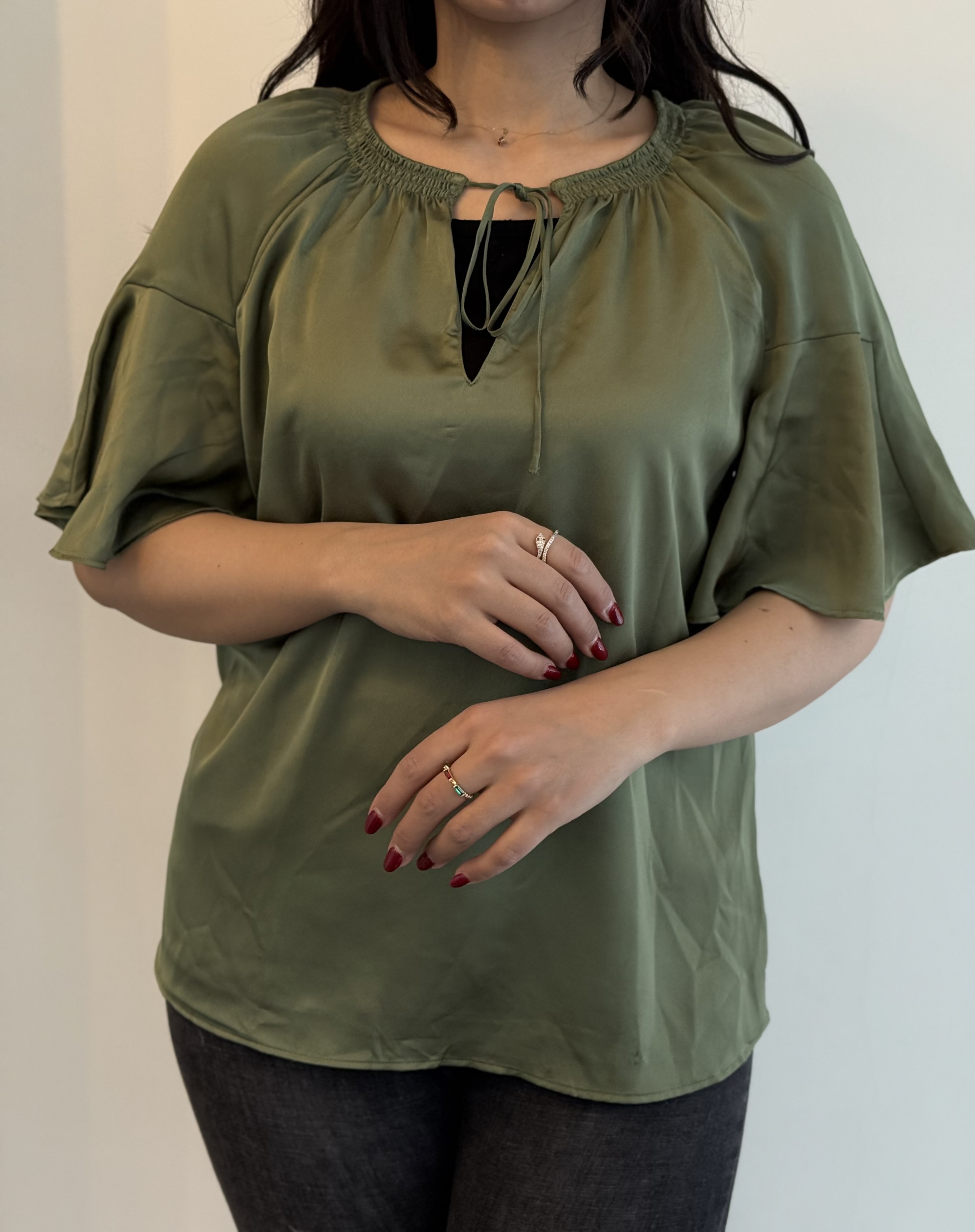 شومیز کرپ آستین پاپیونی رنگ کاربنی